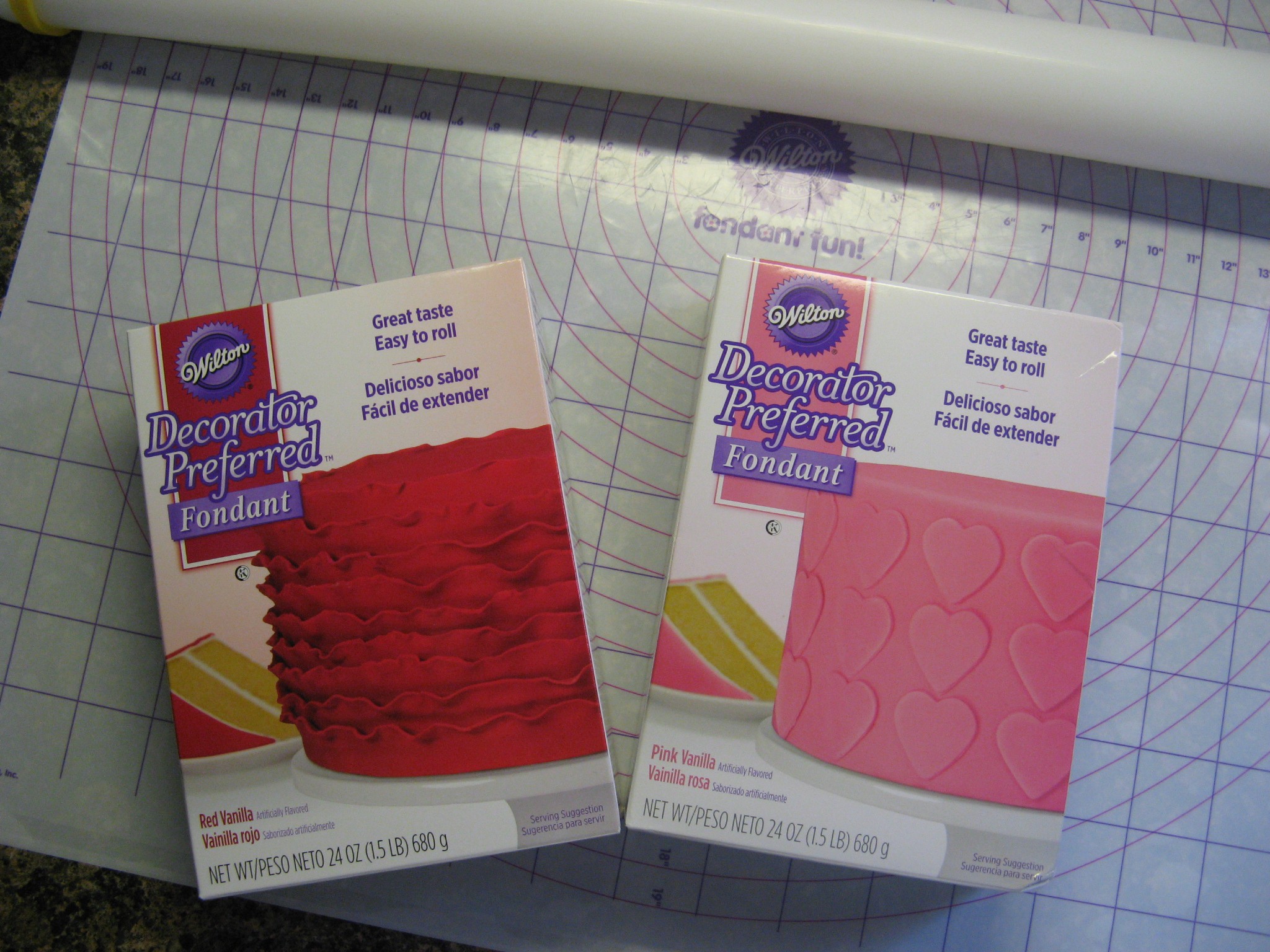 And while I was on a kick making marshmallow fondant recently, I opted to go with store bought fondant to decorate these cakes. I picked up Wilton’s Decorator Preferred Fondant in red and pink and I was pleasantly surprised; it was easy to knead and roll out. I’ve used Wilton’s Rolled Fondant in the past and it wasn’t as easy to work with.