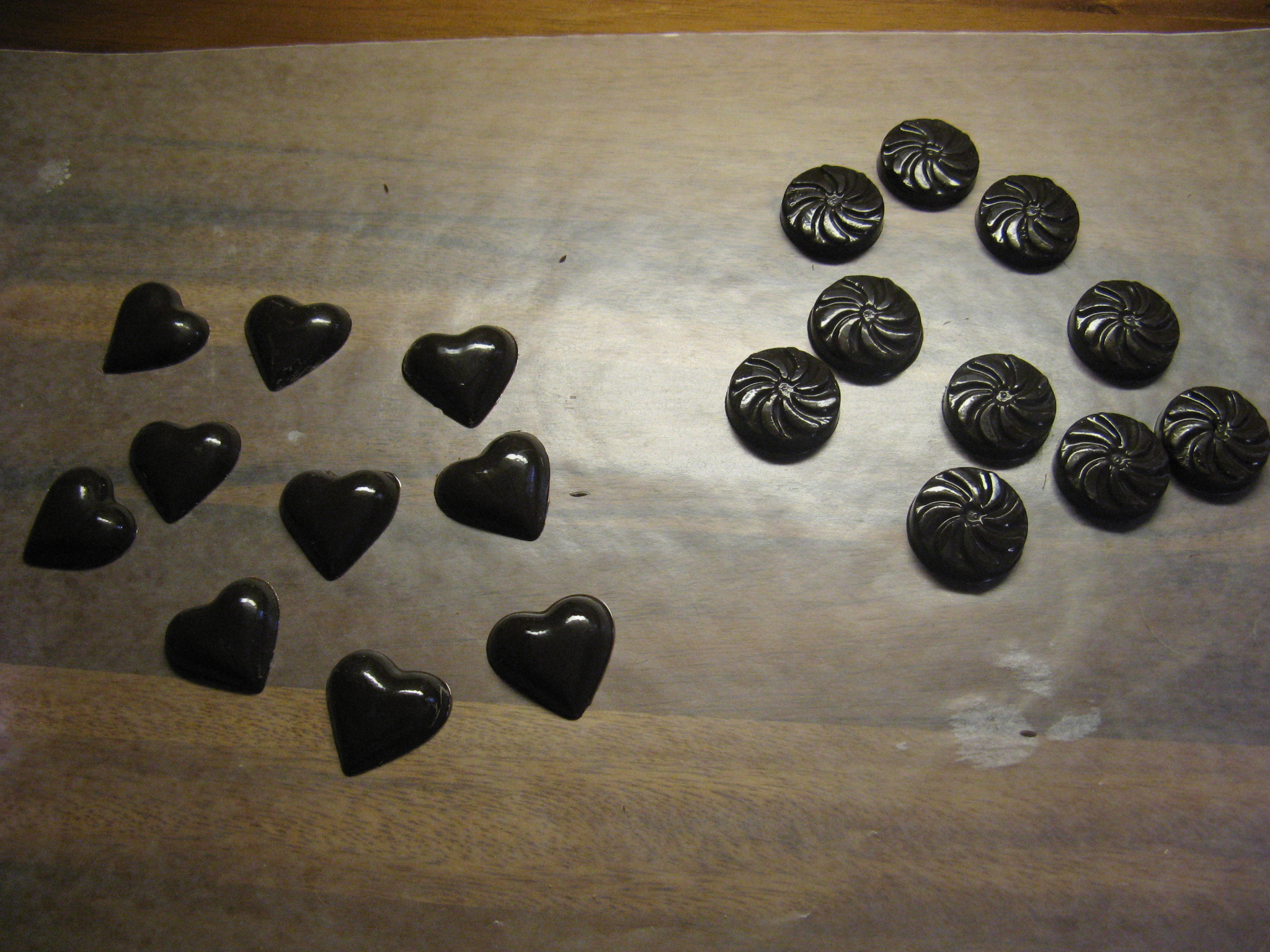 After refrigerating the molds so the chocolate could set I tapped them out onto wax paper.