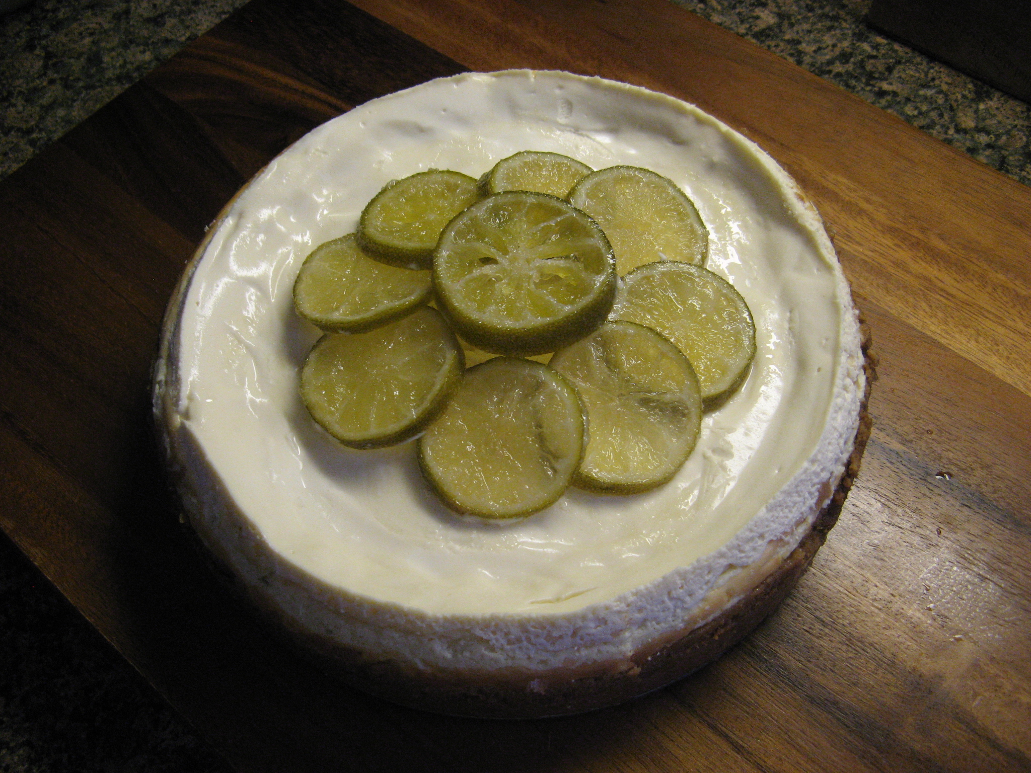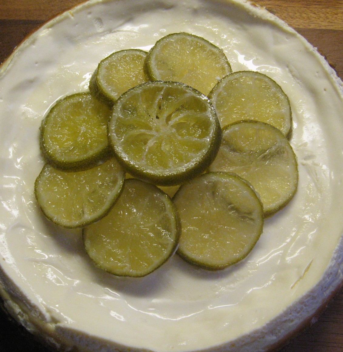 And after letting the cheesecake cool and removing it from the springform pan, I decided to make some candied lime slices to decorate the top of it to give the cheesecake a little extra pizazz.