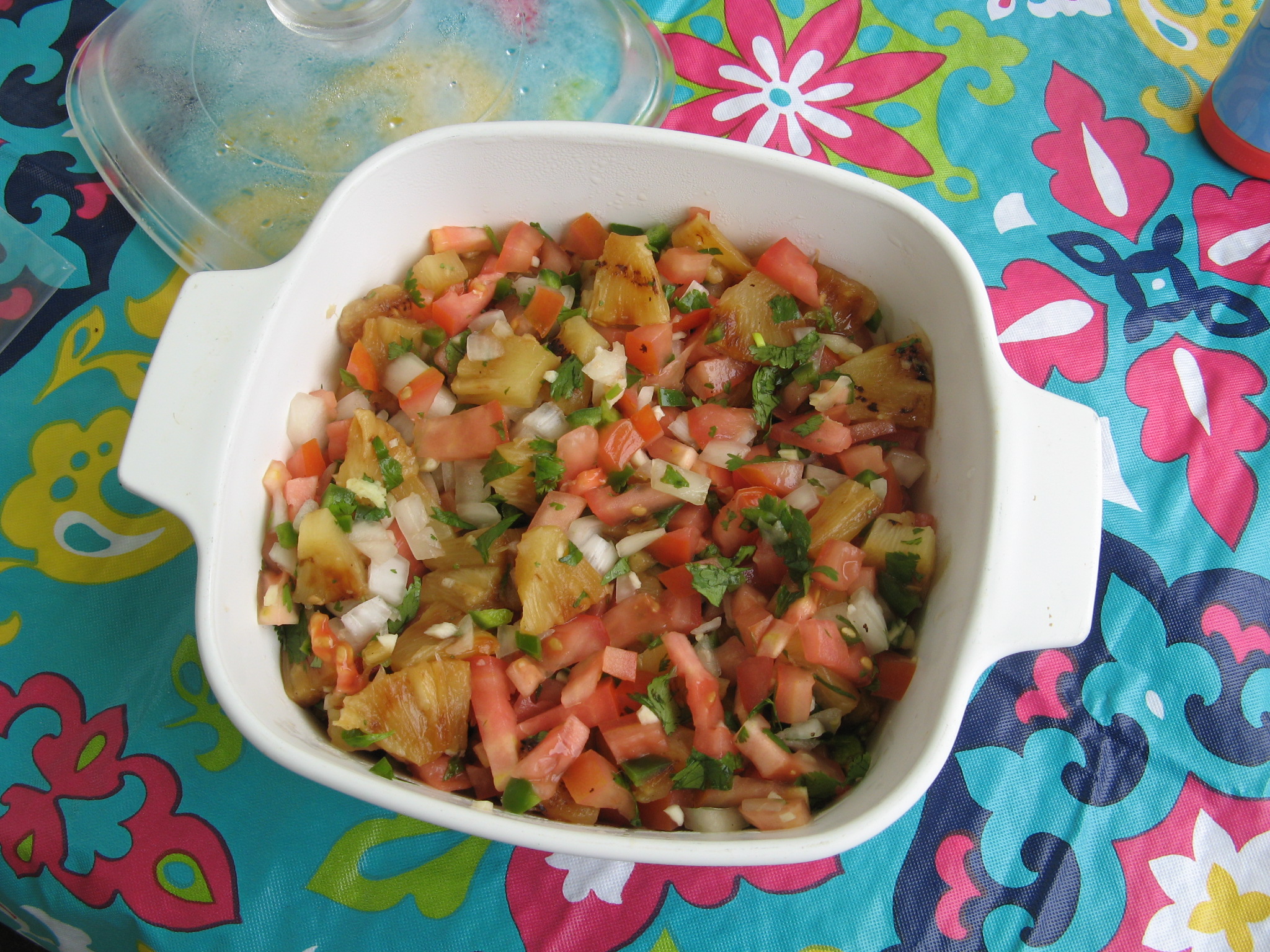 3. Combine the pineapple, onion, tomatoes, jalapeno, garlic, ginger and cilantro in a large bowl. Add the lime juice and season with salt then toss. Serve with tortilla chips. This salsa also tastes great over salmon and grilled chicken.