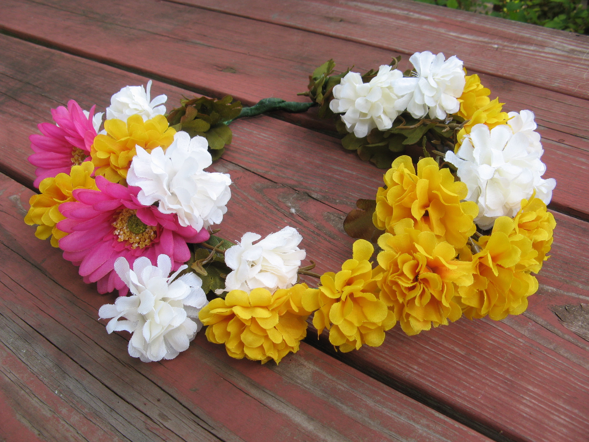 Next up… Flower Crowns. Last year I went to the Renaissance Faire in upstate New York – I had wanted to go for years. I truthfully had no idea what to expect, all I knew was that the description made it sound like fun, and it was. So much so that I went again this year. While there last year I was tempted to buy a flower crown, not sure what stopped me. Oh yeah, I know, the fact that I would never wear it. I won’t even put a hat on my head when it’s freezing cold outside! This year my friends daughters were coming along for the fun; although only the eldest one ended up going. So I decided to make them flower crowns to wear!