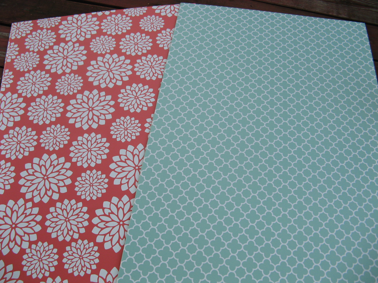 So, one day while I was at my local Jo-Ann’s I picked up project paper in two different patterns – quatrefoil and chrysanthemum – and decided to give this DIY project a go. I began by cutting a piece of the decorative paper bigger than my foam board. After covering my work surface with newspaper I sprayed the foam board with adhesive spray and carefully placed the paper on top of it, smoothing out any bumps. After letting the glue dry overnight, the following day I folded the excess paper around the edges and taped them to the back. To ensure that I would get smooth corners I cut the paper on an angle there before folding it over.