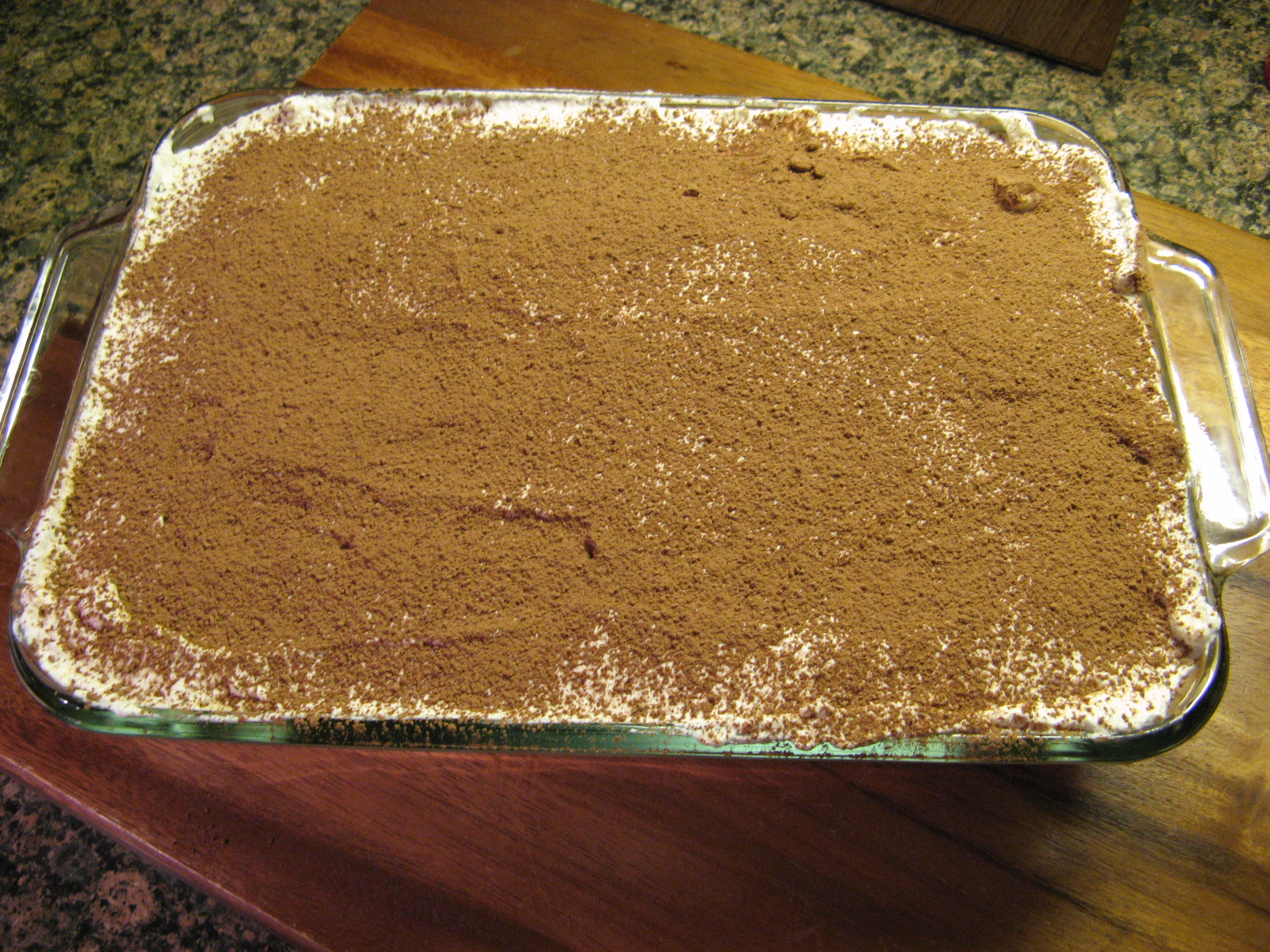 And finally dusted the top with unsweetened cocoa powder. I then covered it and refrigerated it overnight.