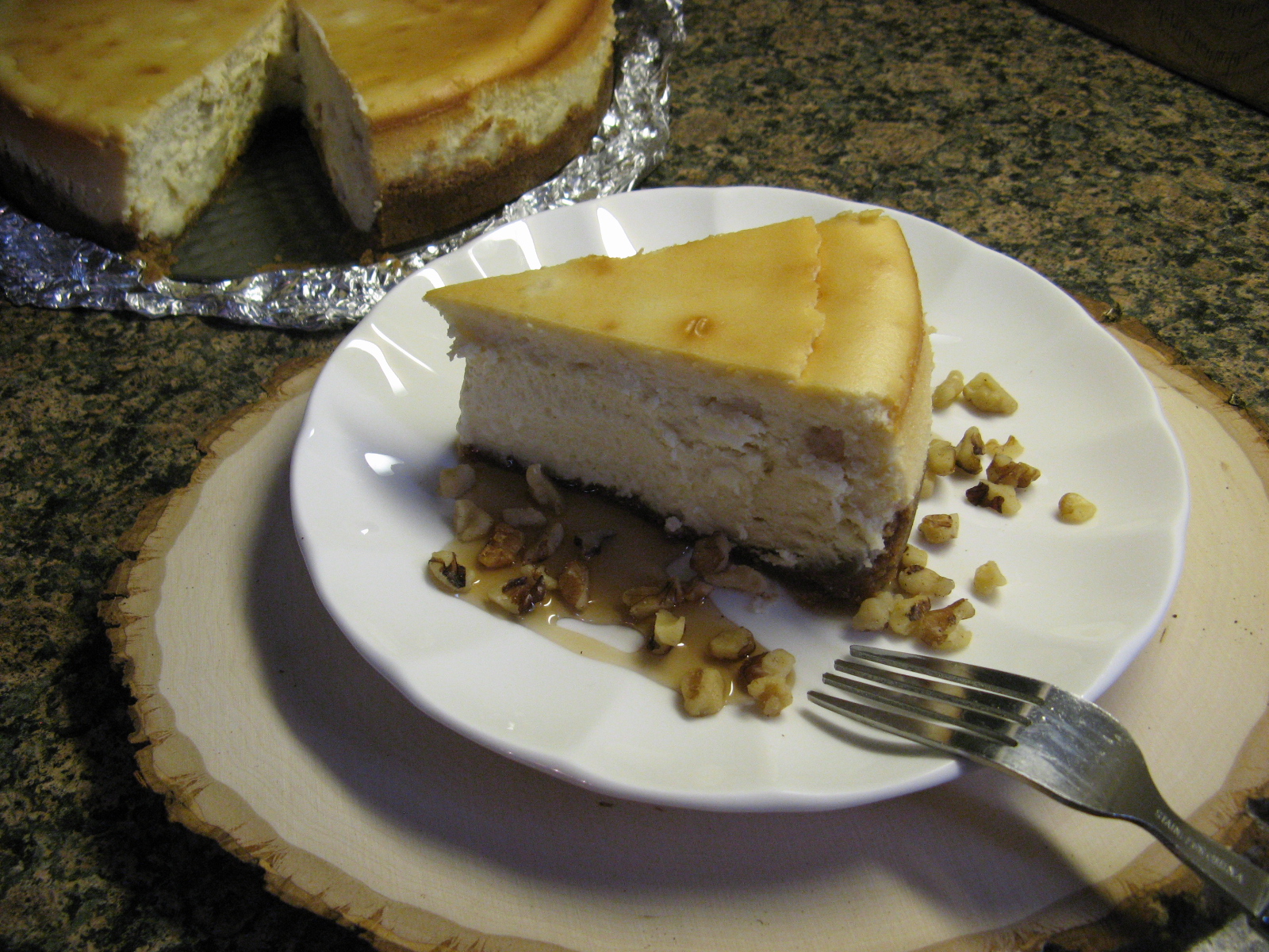 You can pretty much find cheesecake in any flavor these days. Have you ever been to the Cheesecake Factory? Looking at their endless list of options can make you cross-eyed. While there is nothing wrong with the classic, whether you like yours made with ricotta cheese or cream cheese, sometimes you want a cheesecake with an extra hint of flavor and something a little different. Hence me trying out a recipe for a Maple Walnut Cheesecake. Those flavors just seem synonymous with the Fall season and with Thanksgiving just a few days away this may be a good option for you to serve for those guests who are just not into Apple or Pumpkin Pie.