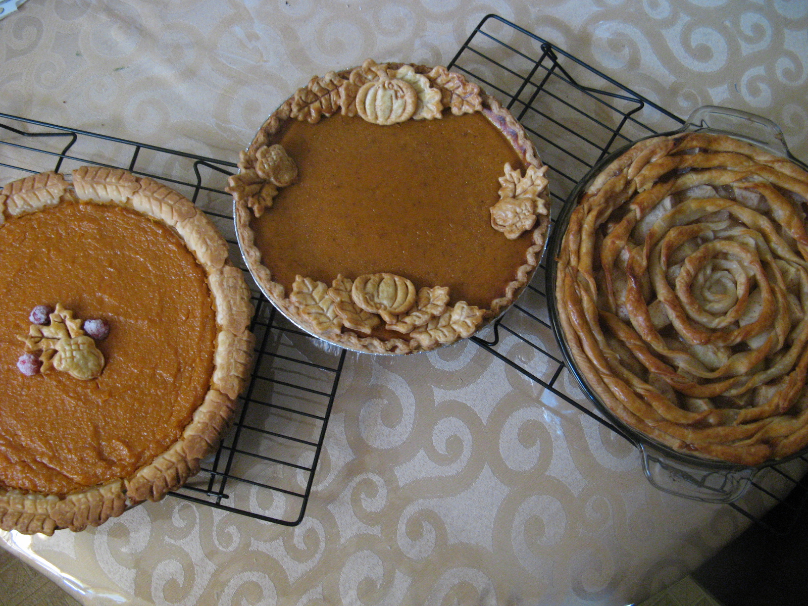 Among the pies was a Pumpkin Pie that I decorated using Fall themed pie cutters. Then there was a Sweet Potato Pie