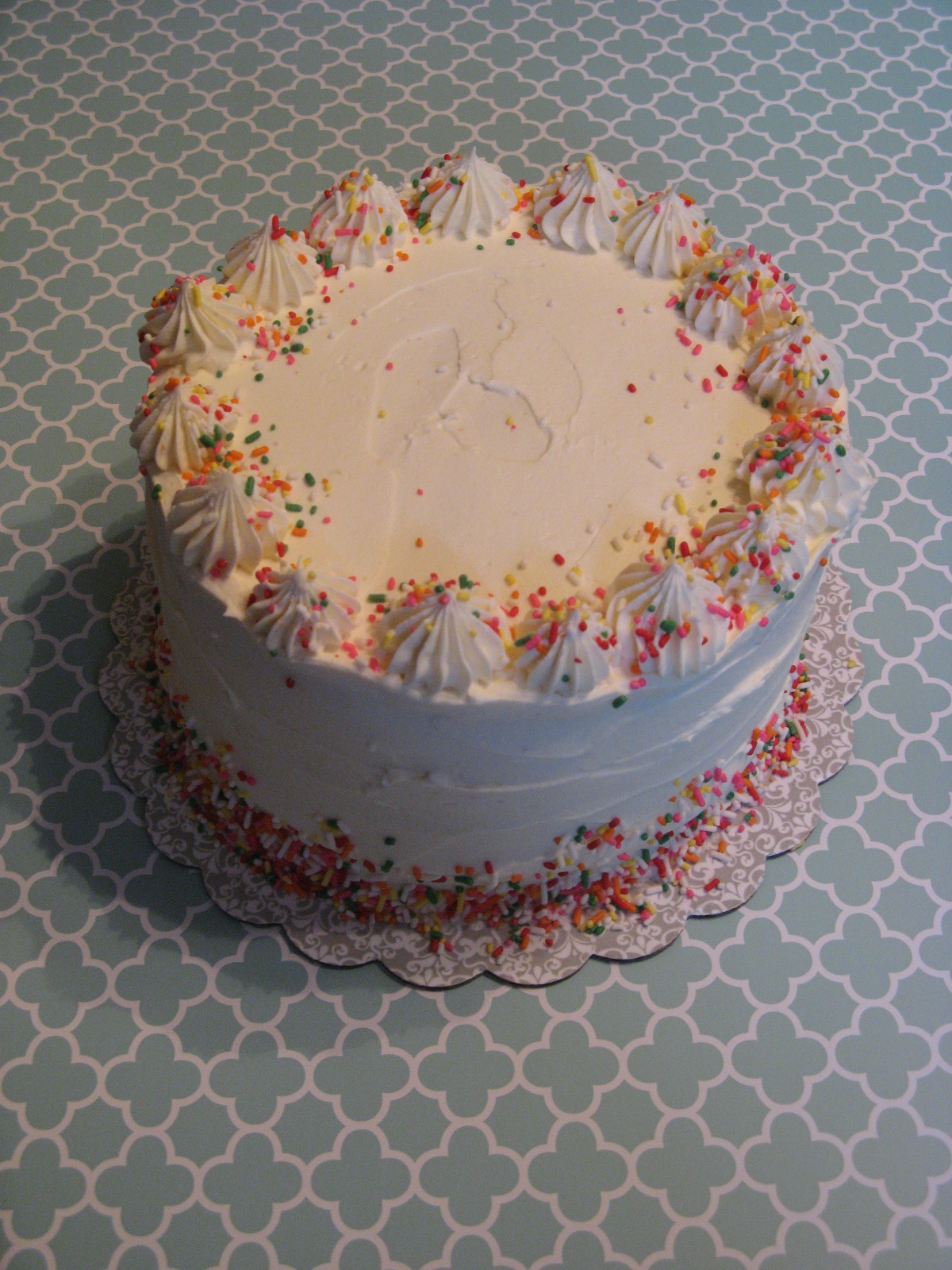 Are you ever too old for sprinkles? If you ask me, I’ll say absolutely not! I’m thirtysomething and when I go to Carvel to get a cup of soft serve vanilla ice cream I always ask for them to put sprinkles in the bottom of the cup before swirling in the ice cream and then ask for more sprinkles on top. So, when a friends’ younger sister asked me to make her a Funfetti cake for her 30th birthday I was more than happy to oblige!