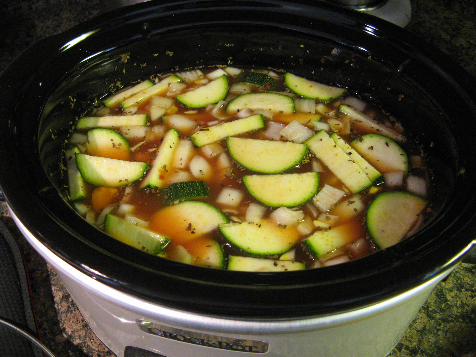 This is probably the best I have ever made and tasted, well, there was this French Onion Soup I had years ago at a restaurant that I still compare all French Onion Soup’s I have had to this day. Maybe I should try making that soup one day. But anyhoo, I digress, as usual. Back to the soup at hand, an Italian Vegetable and Pasta Soup that best of all is made in a slow cooker. There’s nothing better than dumping everything into your slow cooker and then coming back a few hours later with a great meal waiting for you.