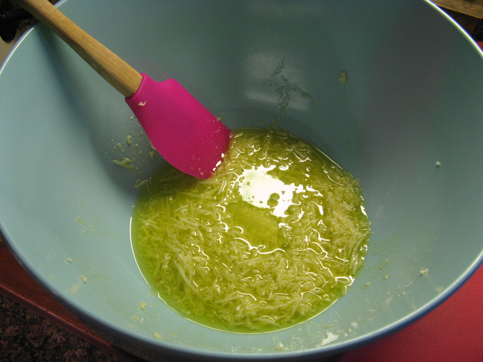 I began by combining olive oil, grated Parmesan, minced garlic and salt in a large bowl.