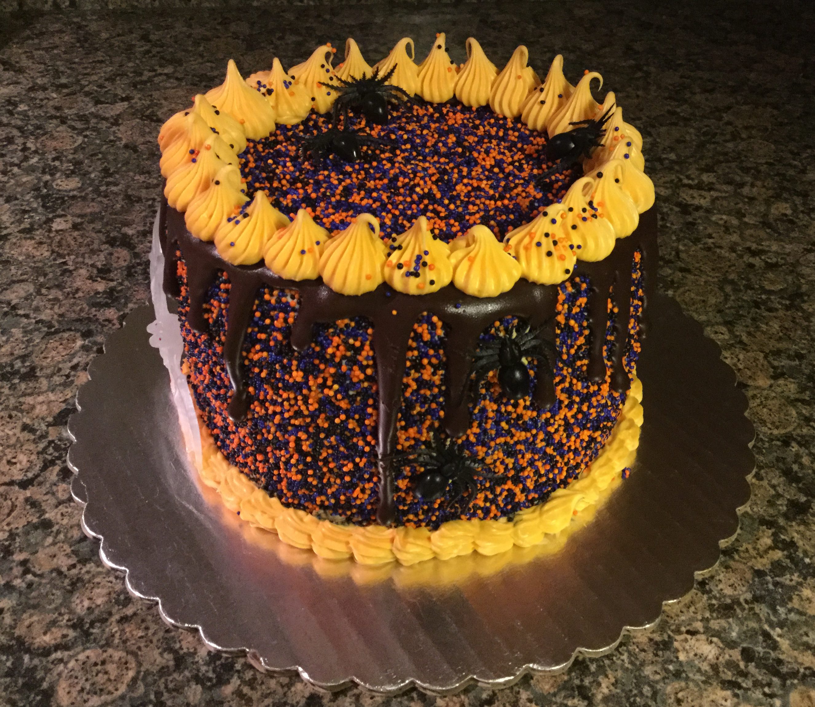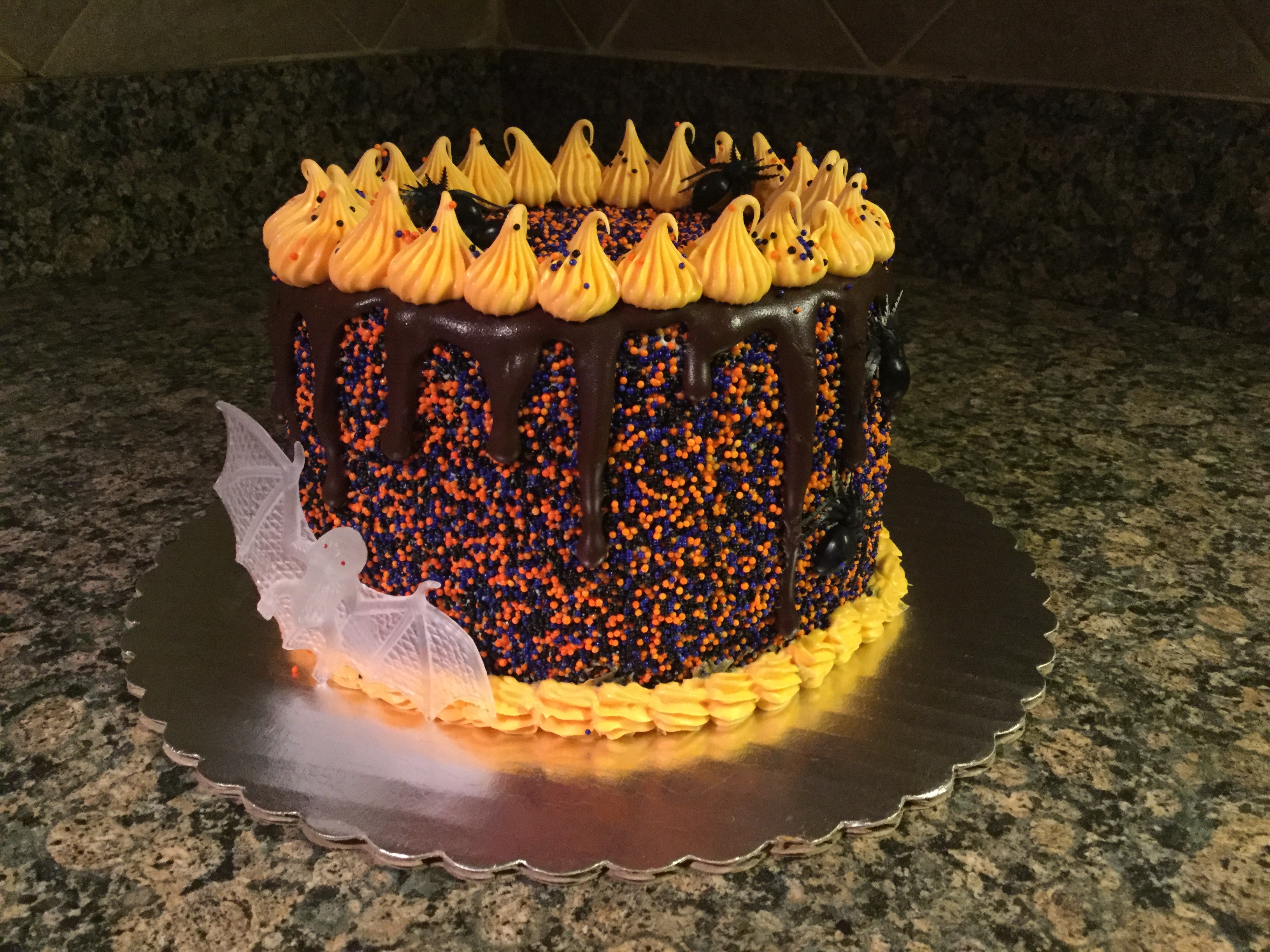 Happy Halloween! So, will any of you be dressing up today? I can’t remember the last time I dressed up. These days I prefer to dress-up my baked treats with a Halloween theme. And this year, I made a Halloween themed Sprinkle Cake. If you’re wondering, a sprinkle cake is exactly what it sounds like. A cake covered in sprinkles. What’s fun and great about them, they work for any occasion… you just have to change the color of your sprinkles and you are all set.