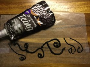 I needed to make sure that the icing was easily pipeable and also to test how thick the piping would be with the tip it came with. I opted to go with a smaller tip.