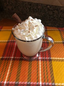 I enjoyed it topped with whipped cream and freshly grated nutmeg and a cinnamon stick as a garnish/stirrer. I actually used one of the cinnamon sticks that I added to the slow cooker. This is the perfect autumn warm-me-up beverage. Or, thinking ahead, an ideal complement to your Thanksgiving desserts. You could easily double or triple the recipe for a large group of people.