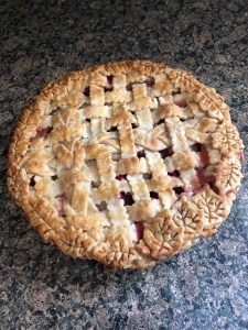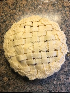I’ll admit that I took some major shortcuts when it came to making the crust for this pie. First off, I used a frozen deep dish pie crust as the base and for the lattice pattern I used refrigerated pie crust that I cut into strips to weave and braid and then added a decorative border with leaf cut-outs. I decided to brush the pie with milk prior to baking – I usually use an egg, but, after all of the baking I did I was feeling lazy and didn’t feel like cracking and whisking an egg – so I made sure to dab a little milk under the leaf border so to that the leaves and the lattice and braided strips would adhere to the crust. One other thing to note, I let the frozen crust sit out at room temperature for a few minutes after filling it so that it would be easier for my top crust stick to it. As for the filling, if you’ve never had pear pie you should definitely try one. For me, pear pie isn’t as sweet as apple pie and while I do bake a lot I actually don’t like things that are overly sweet. If you want the best of both worlds, try this Brown Butter & Vanilla Pear Pie I made last year for Thanksgiving. While the filling consists mainly of pears, there is 1 apple in the mix. As for the recipe for this or, I got it from the premiere issues of Magnolia Journal last year. You can find the recipe here.