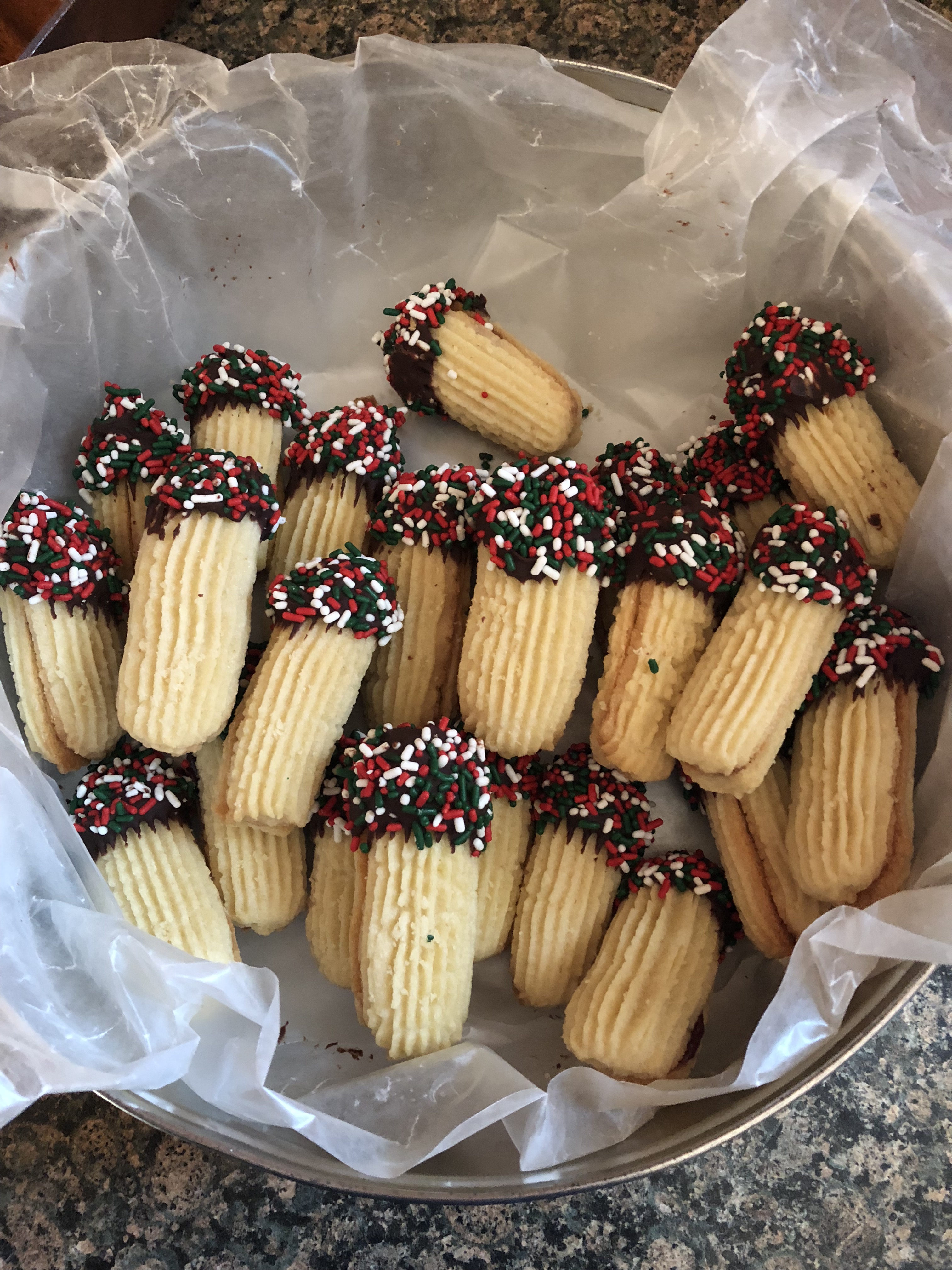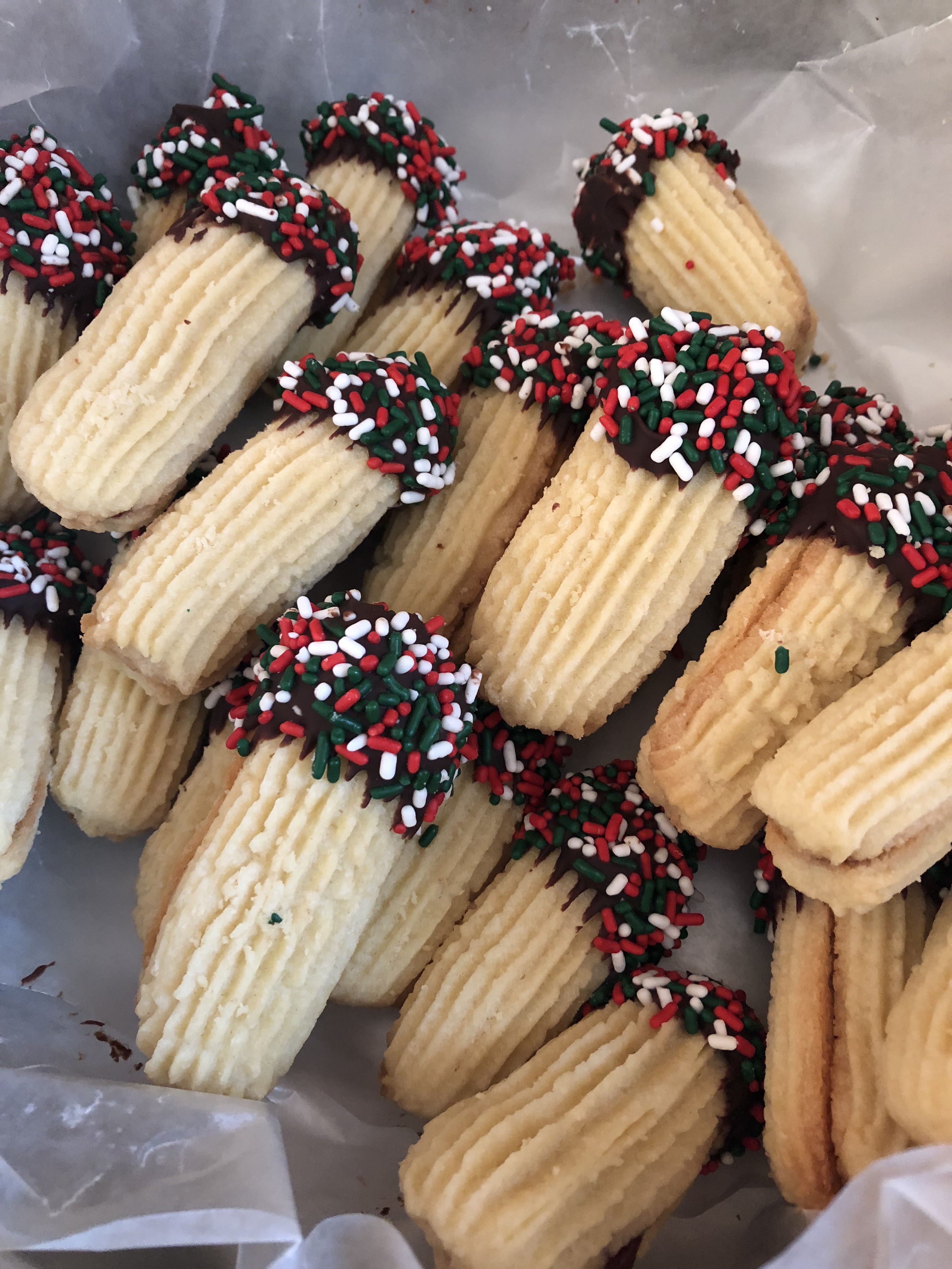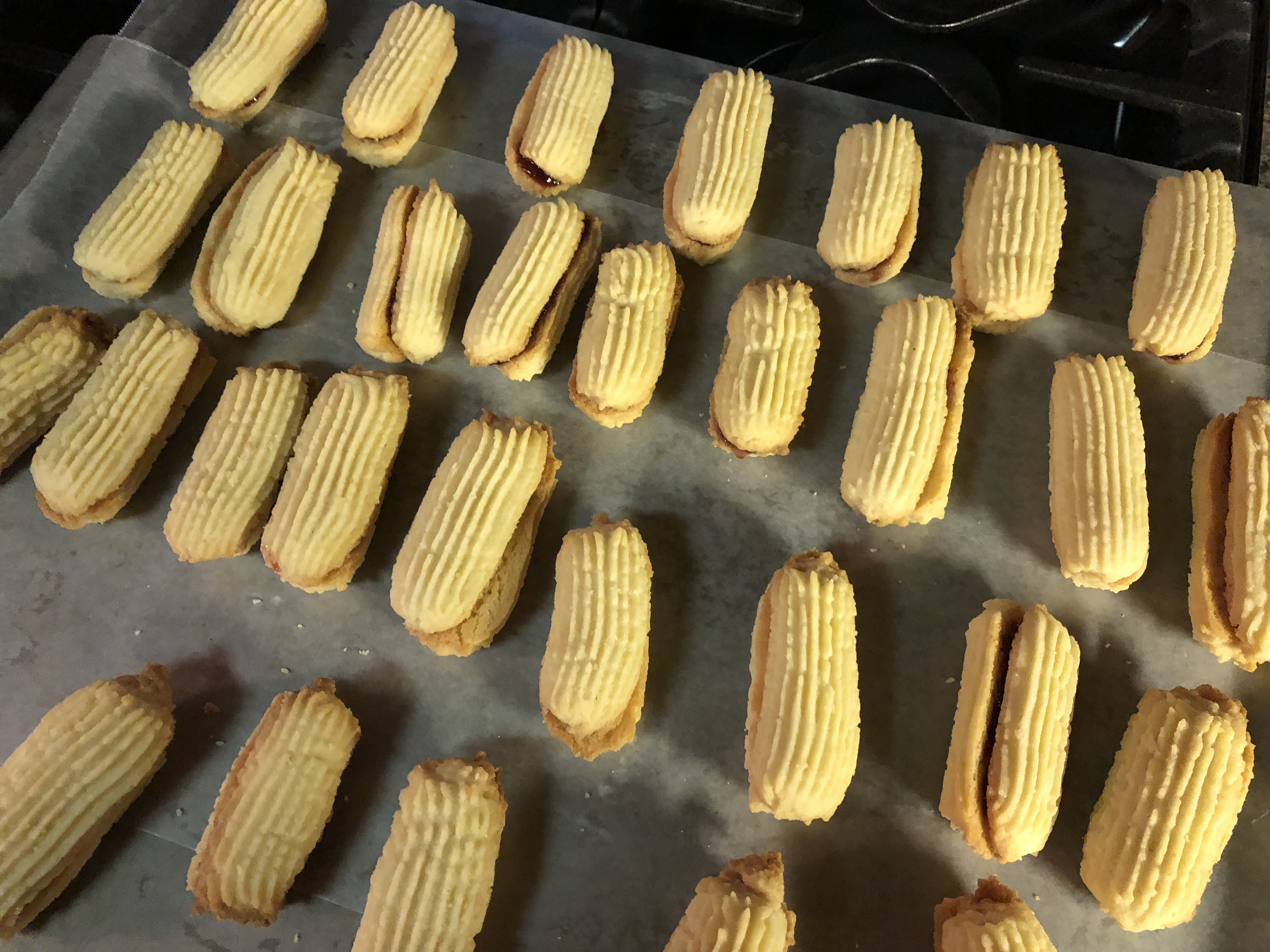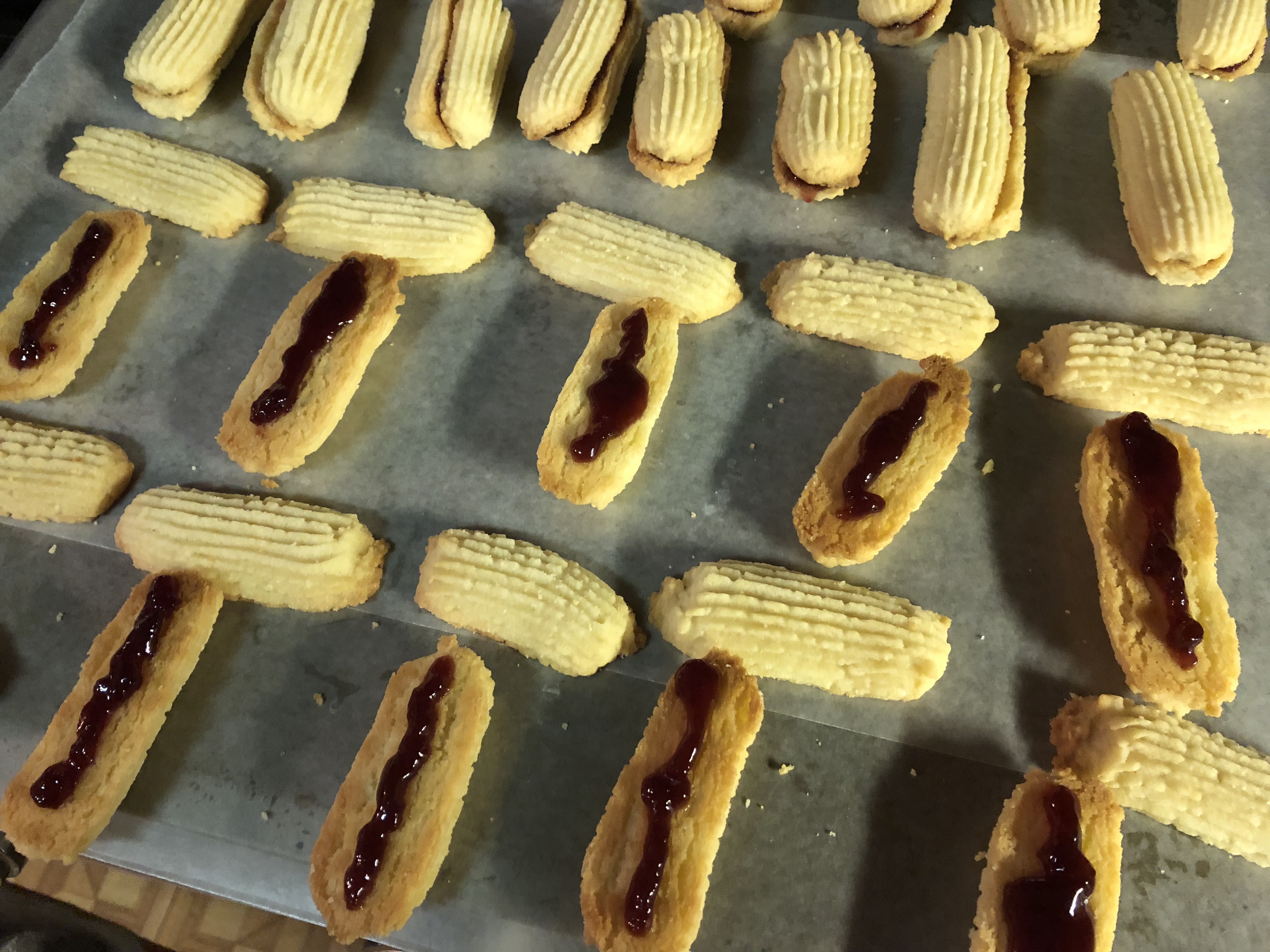 Welcome to Day 2 of Cookie Palooza 2018! Today I am bringing you a traditional butter bakery cookie. Not the round ones covered in sprinkles, but the long sandwich ones that are filled with jam, dipped in chocolate and then rolled in sprinkles. YUM! It’s actually one of my favorite cookies, but it wasn’t always. I used to buy a package of butter cookies from my local Costco and I would always eat the round ones with the sprinkles from the package, leaving the sandwich ones for my parents to eat. Then one day I tried them and realized that they tasted much better than the other ones. Unfortunately Costco changed their supplier and the new ones they carry do not taste half as good. They taste more artificial. Thankfully this homemade version fills the void.