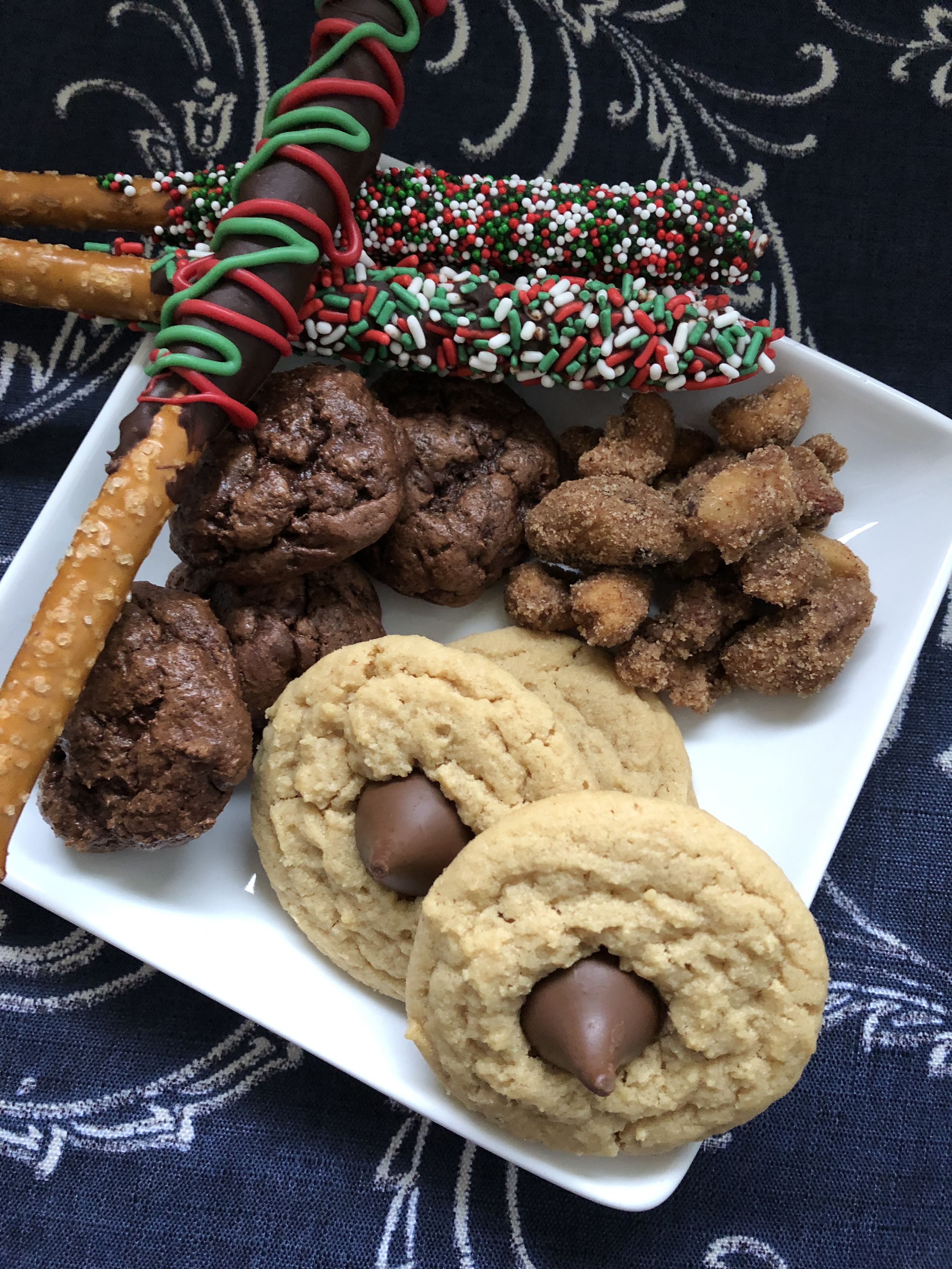 These cookies were part of a box of treats I mailed to a friend. Included in the box were the Chocolate Covered Pretzels and Candied Nuts I posted about earlier this week. Also included were Peanut Butter Blossoms. All wonderful homemade treats to gift to anyone on your list and can easily be made this last weekend before Christmas.