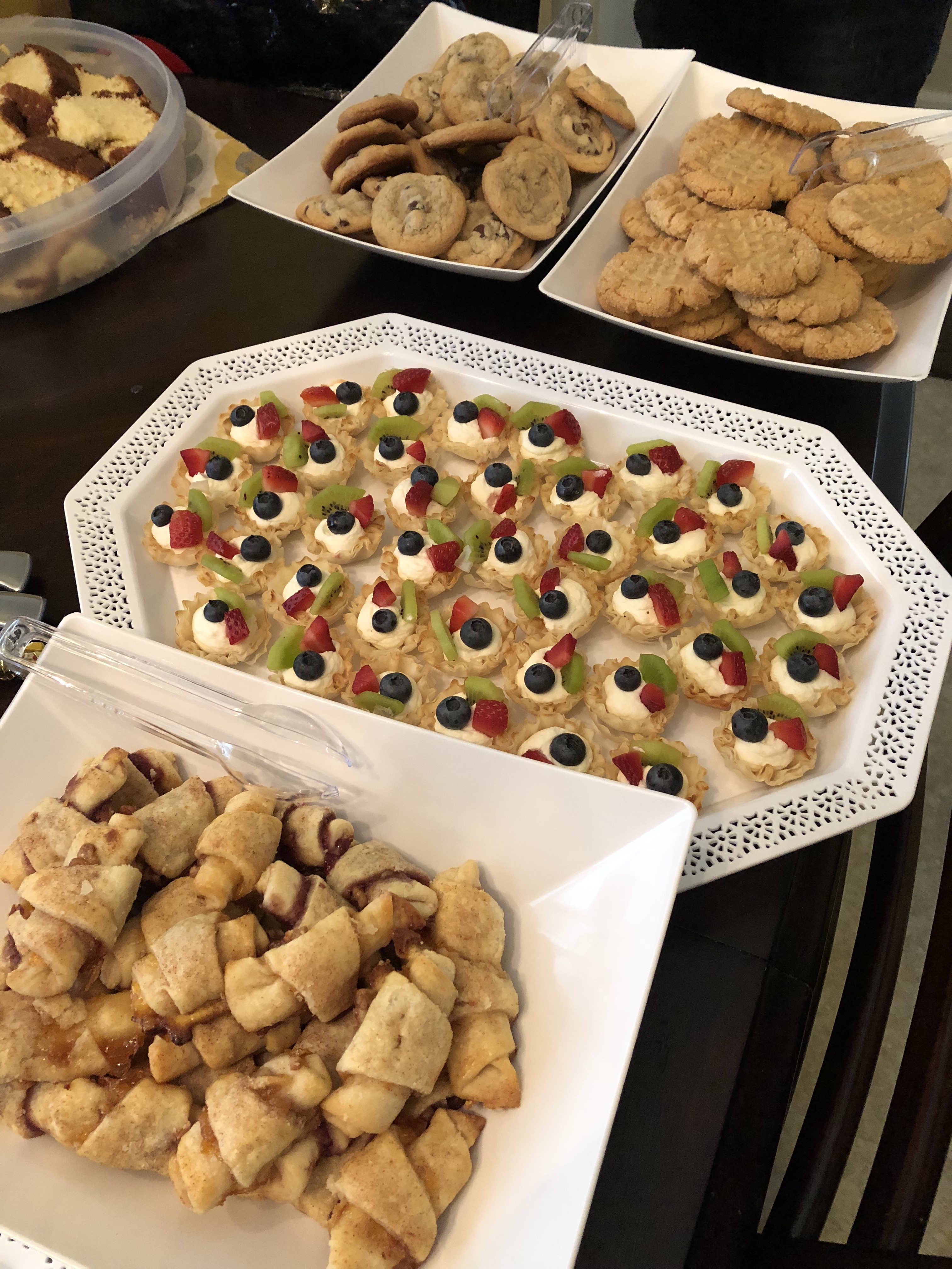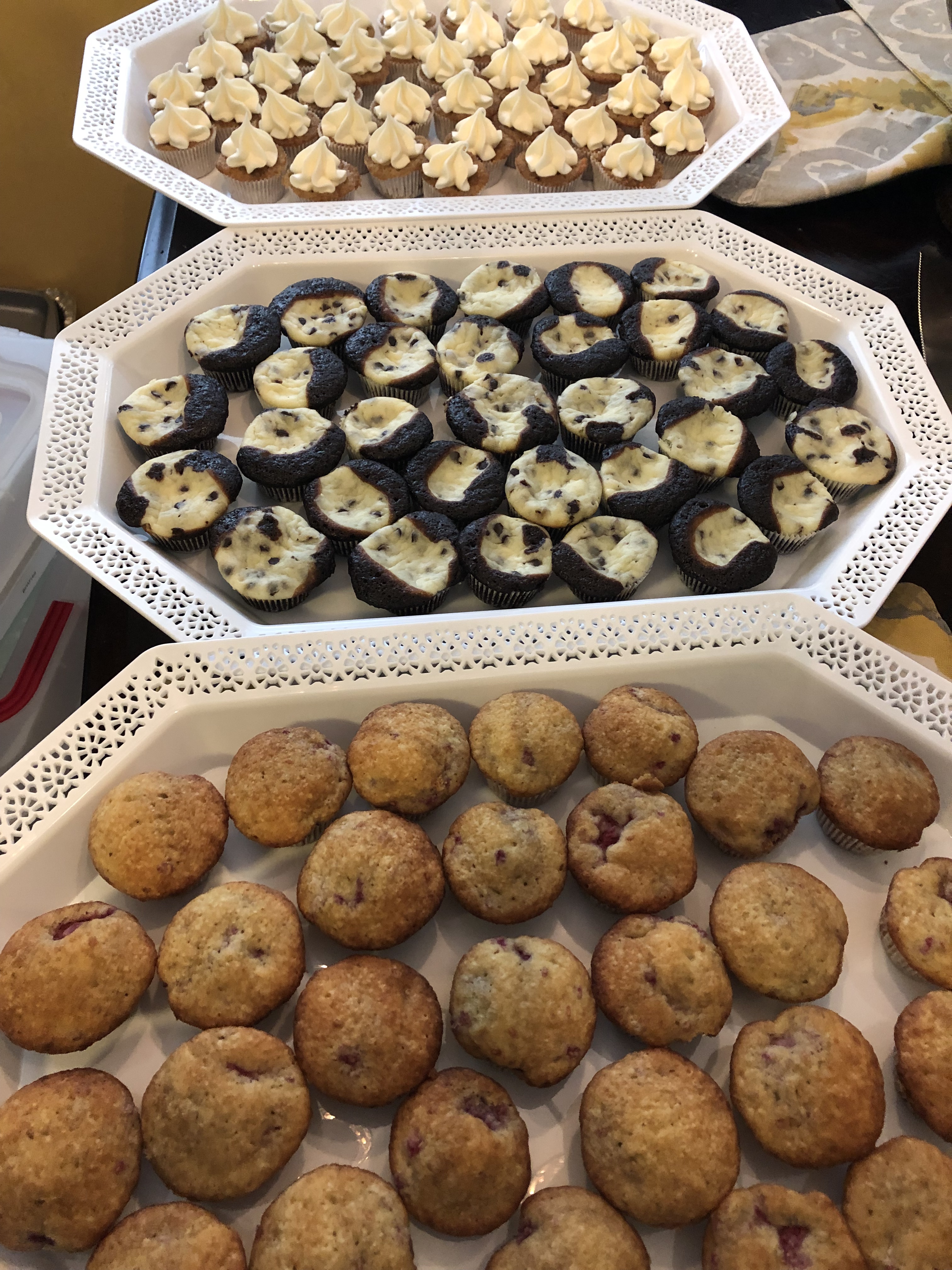 Here are some pics of all the desserts I made. Oh yeah, at the last minute (the night before) I decided to make mini carrot cupcakes as well. I ended up using my go-to Carrot Cake recipe and since I didn’t halve it I ended up with about 100 mini cupcakes. I only ended up frosting half of them and the rest ended up being the perfect little snack to munch on.