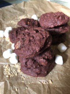 The resulting cookie is one that’s perfectly chocolatey, a little gooey thanks to the marshmallows and has a hint of graham cracker.