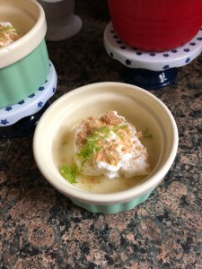 Once the pudding has set top each one with a dollop of whipped cream, crushed graham crackers (to crush, I placed 1 graham cracker in a Ziploc bag and then rolled with a rolling pin) and lime zest.