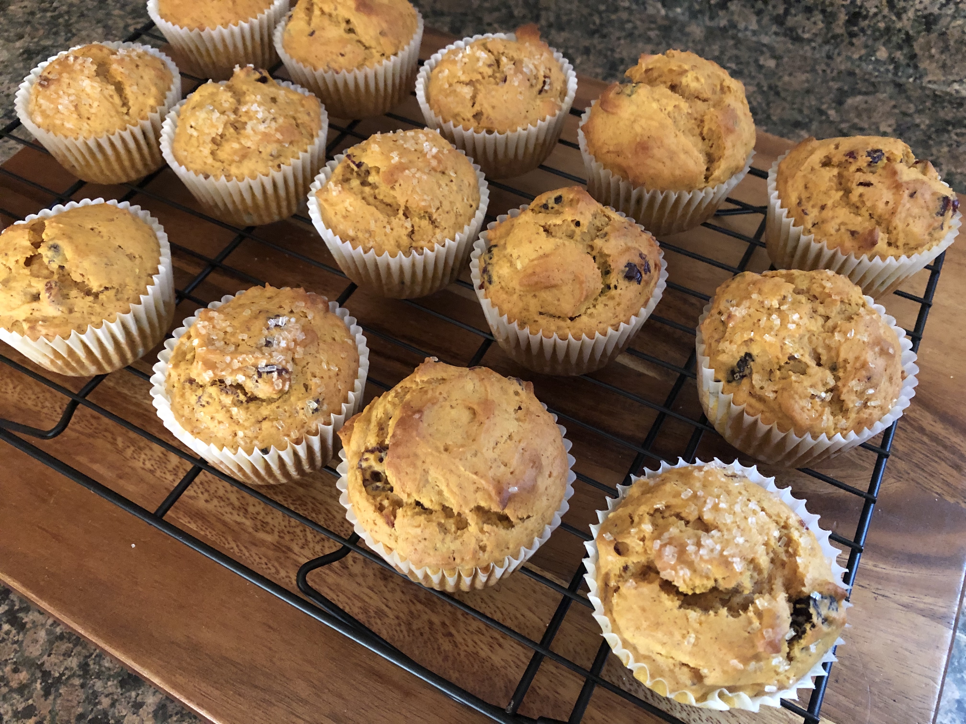 After baking for about 20 minutes I removed them from the oven and transferred them to a wire rack to cool completely. Once they were cool I tried one and I was very happy that I had switched up the spices. I think the original recipe of just cinnamon and ginger would have produce a muffin that was a bit on the bland side.