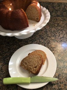 After adding a cinnamon sugar coating to the cake and letting it cool completely it was time to slice in to the cake and enjoy a piece. It didn’t taste exactly like my favorite apple cider doughnuts, but, it was just as good.
