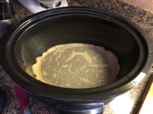 I prepped my slow cooker by spraying the insert with non-stick cooking spray and then lining the bottom with parchment paper that I then sprayed with the spray as well.