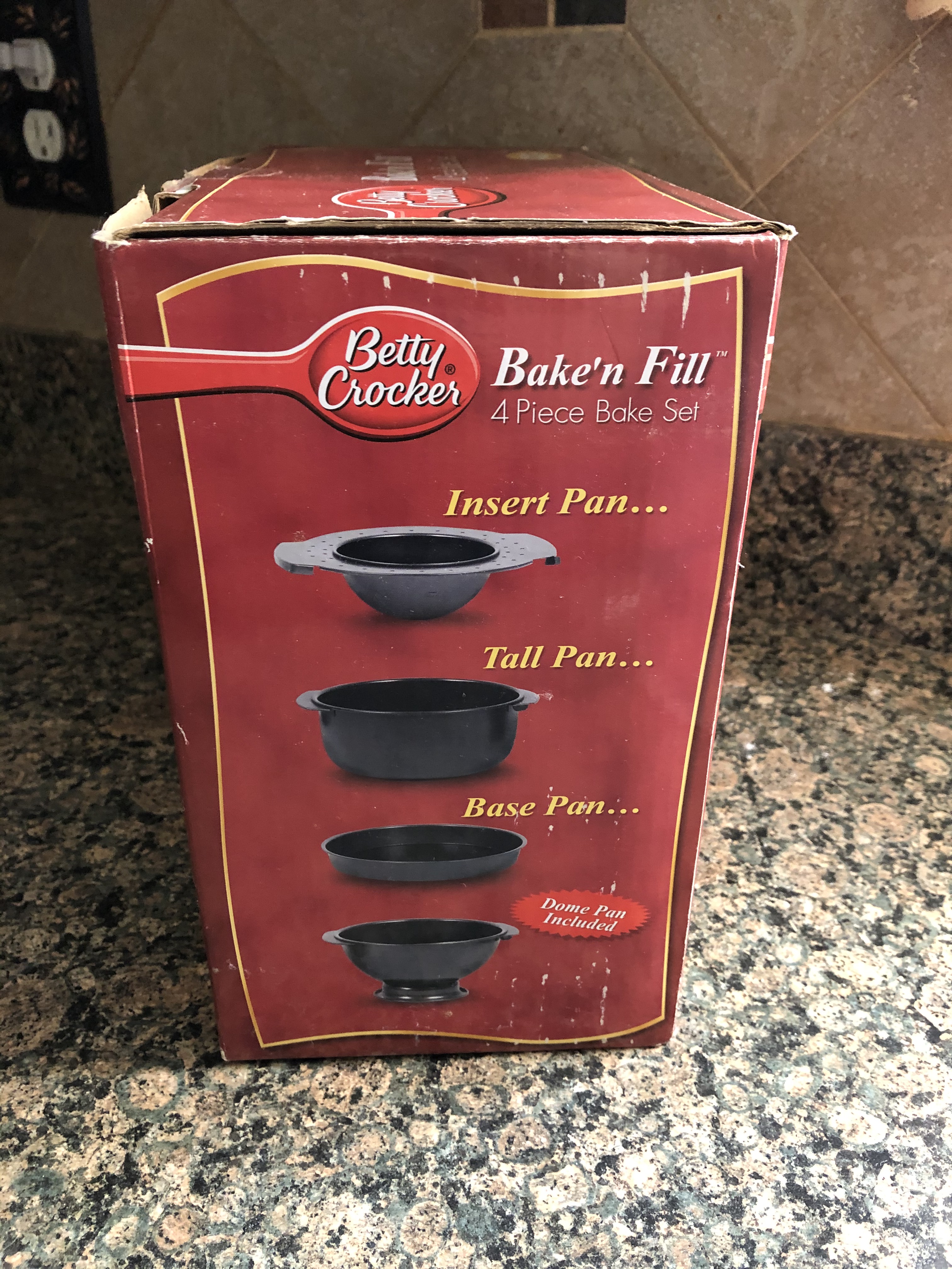 In case you have no clue what I am talking about. These pans were sold in a set by Better Crocker years ago. They first came out in the early 2000’s. Below is a link to the infomercial if you are curious. The whole idea was that you are able to create cakes with fillings (ice cream, fruit, another cake, etc.) or make a cool design like a baseball or a lady bug.