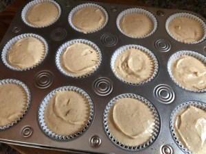 Heat oven to 325 F. Line two 12-cup muffin pans with cupcake liners.