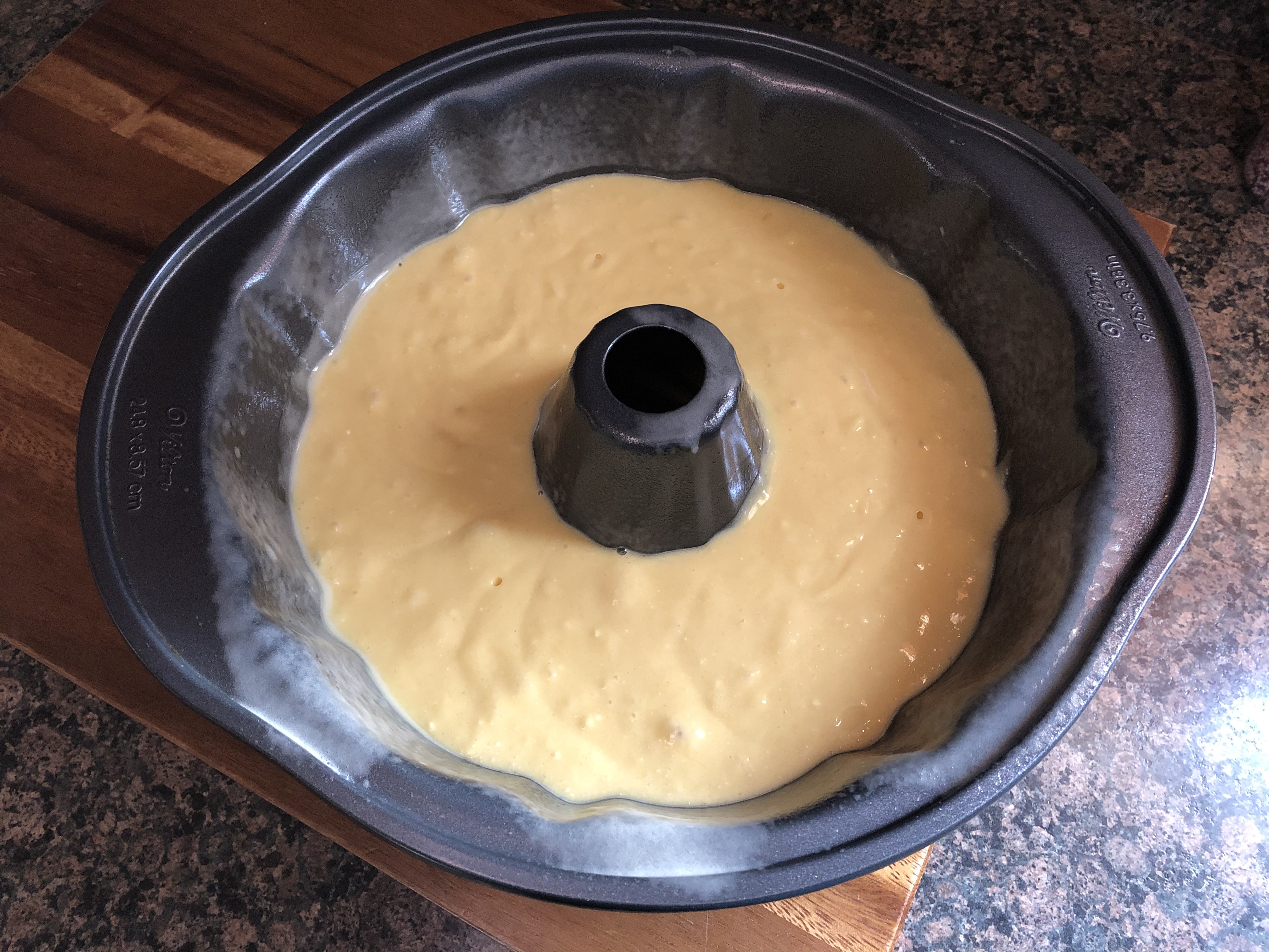 Preheat the oven to 325 F. Spray a Bundt pan with baking spray (or lightly grease and then coat with flour) and set aside.