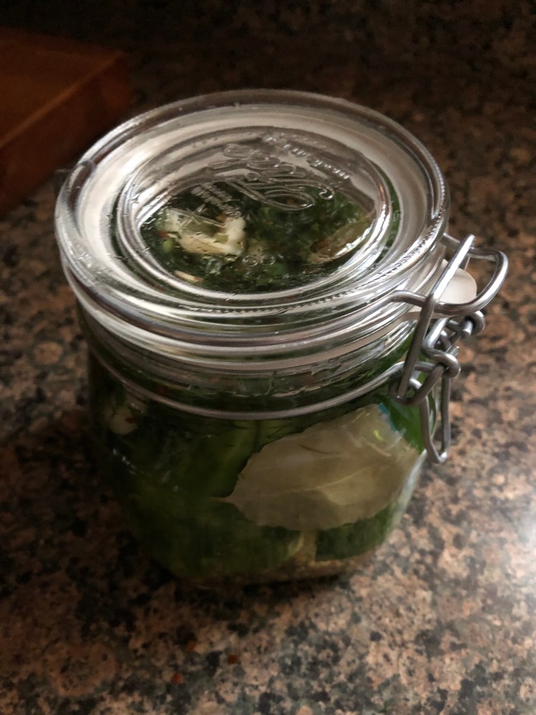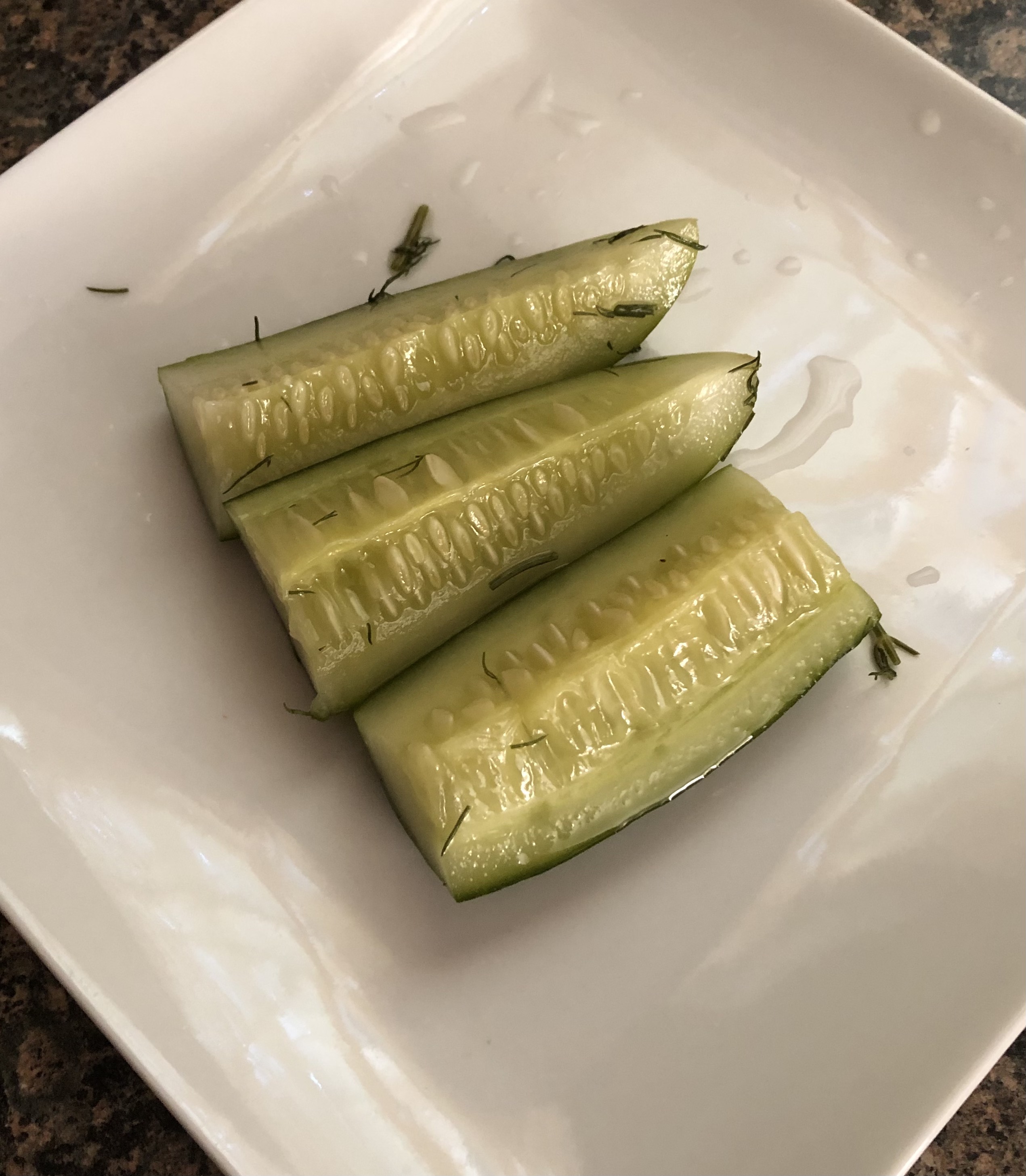 And then sealed it and refrigerated it for at least 24 hours before trying one of the pickles.