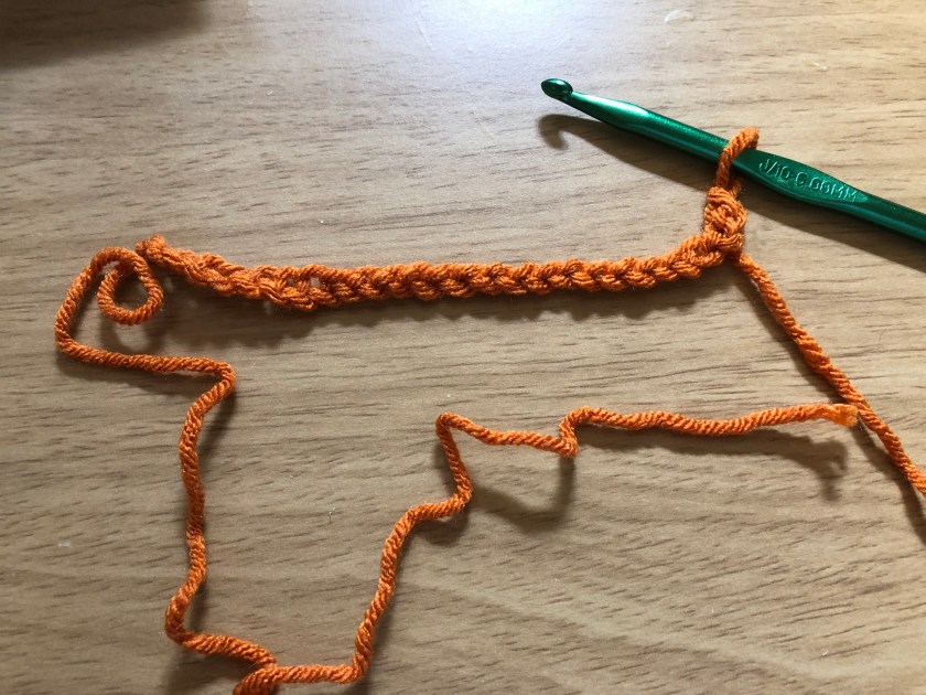 What’s great about this pattern is that gauge doesn’t matter and you don’t have to count rows. I am going to show you a nifty way to know when you have crocheted enough rows. As for the crochet hook size you should use, I would go with the size that is suggested for the yarn you decide to use. That’s what I have been doing. Just realize depending on the yarn weight you use that will determine the size of your pumpkin. You could start with the same length of your foundation chain with a chunky yarn and medium weight yarn and end up with two pumpkins that are completely different sizes.