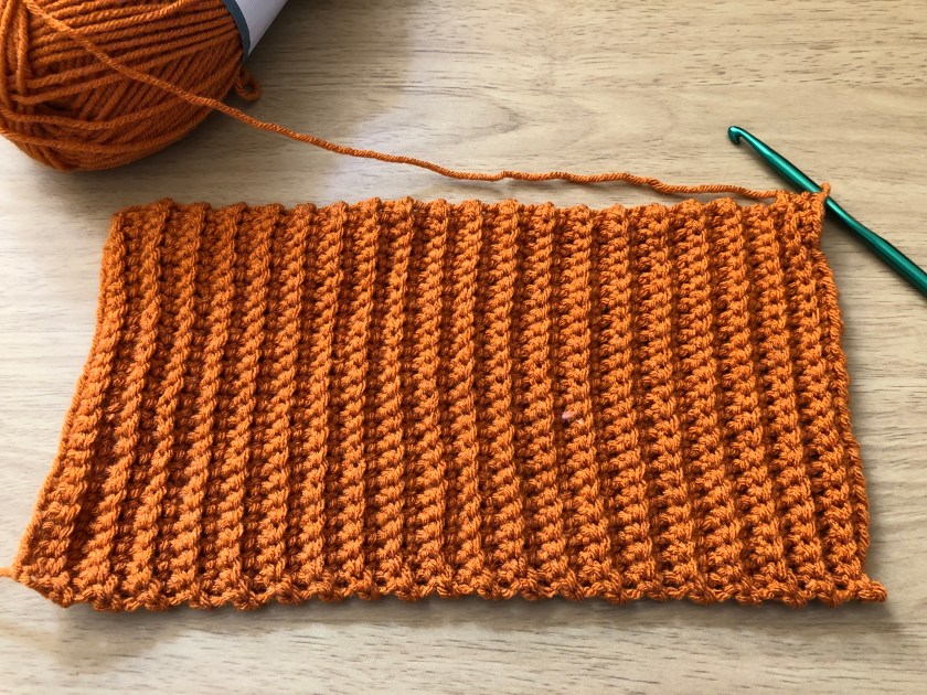 For the second row and each subsequent row, ch1 and single crochet into each back loop across the row.