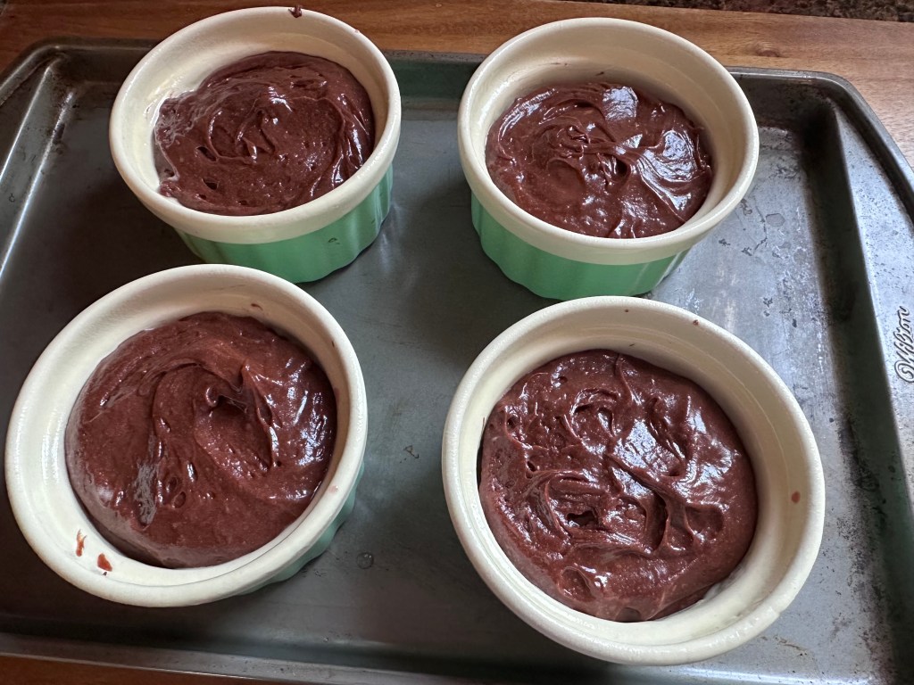 Preheat the oven to 425 F. Spray 4 6-oz ramekins with baking spray and place on a baking sheet.