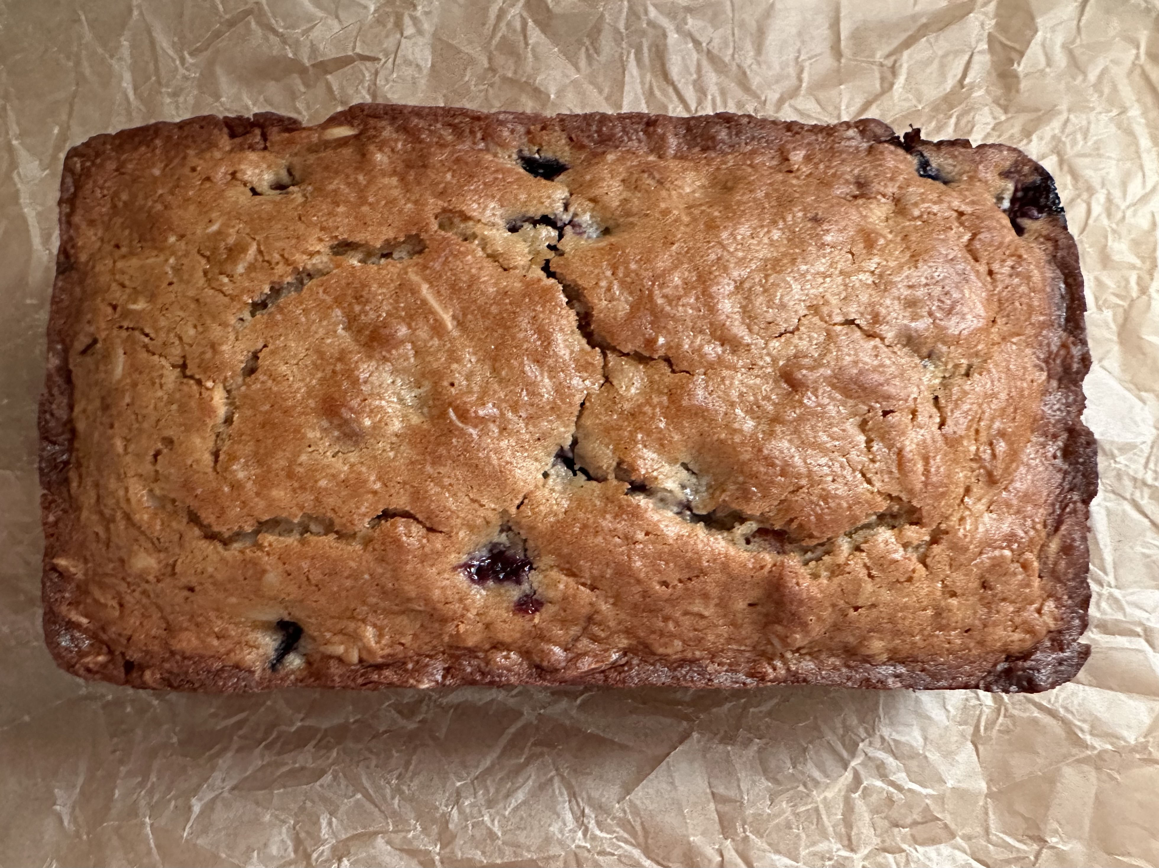 Initially I thought the recipe may have called for too many blueberries as the first few slices were heavily laden with them and there was barely any bread/cake, but after a few more slices the blueberries appeared to be more evenly dispersed.