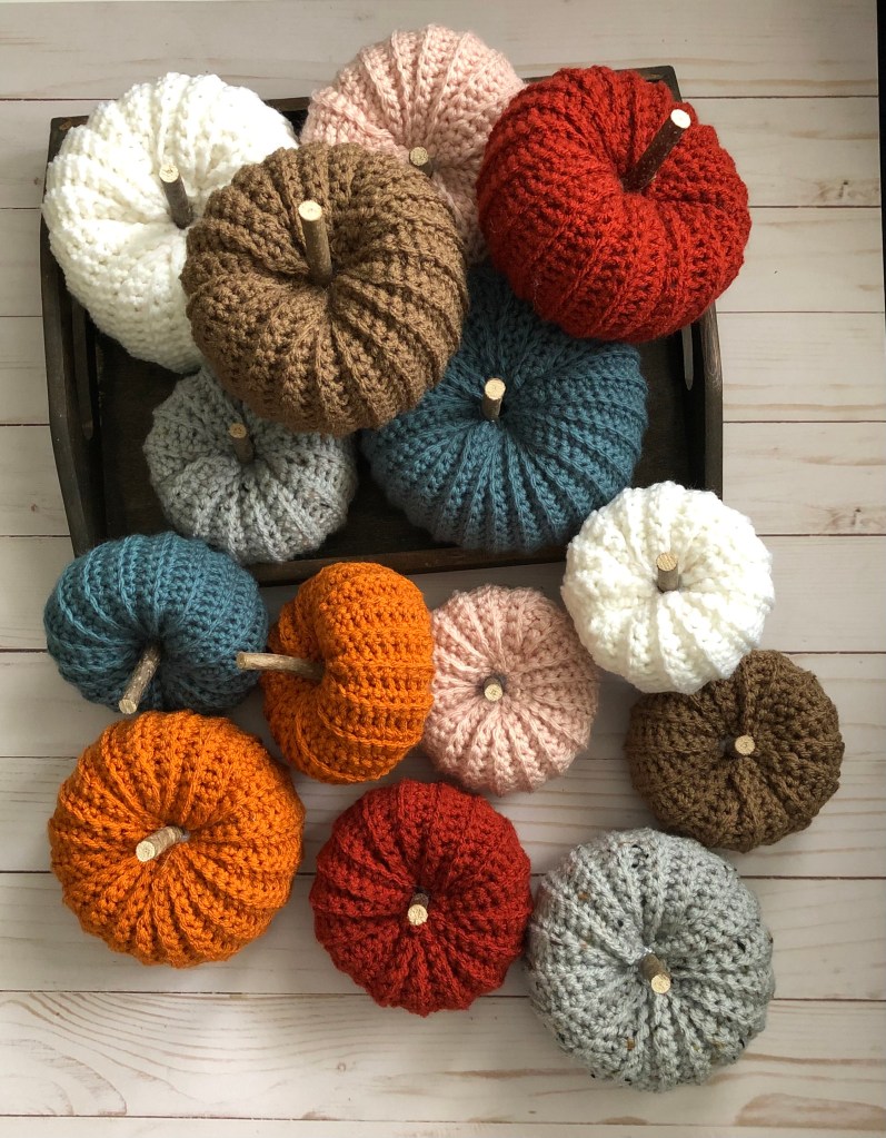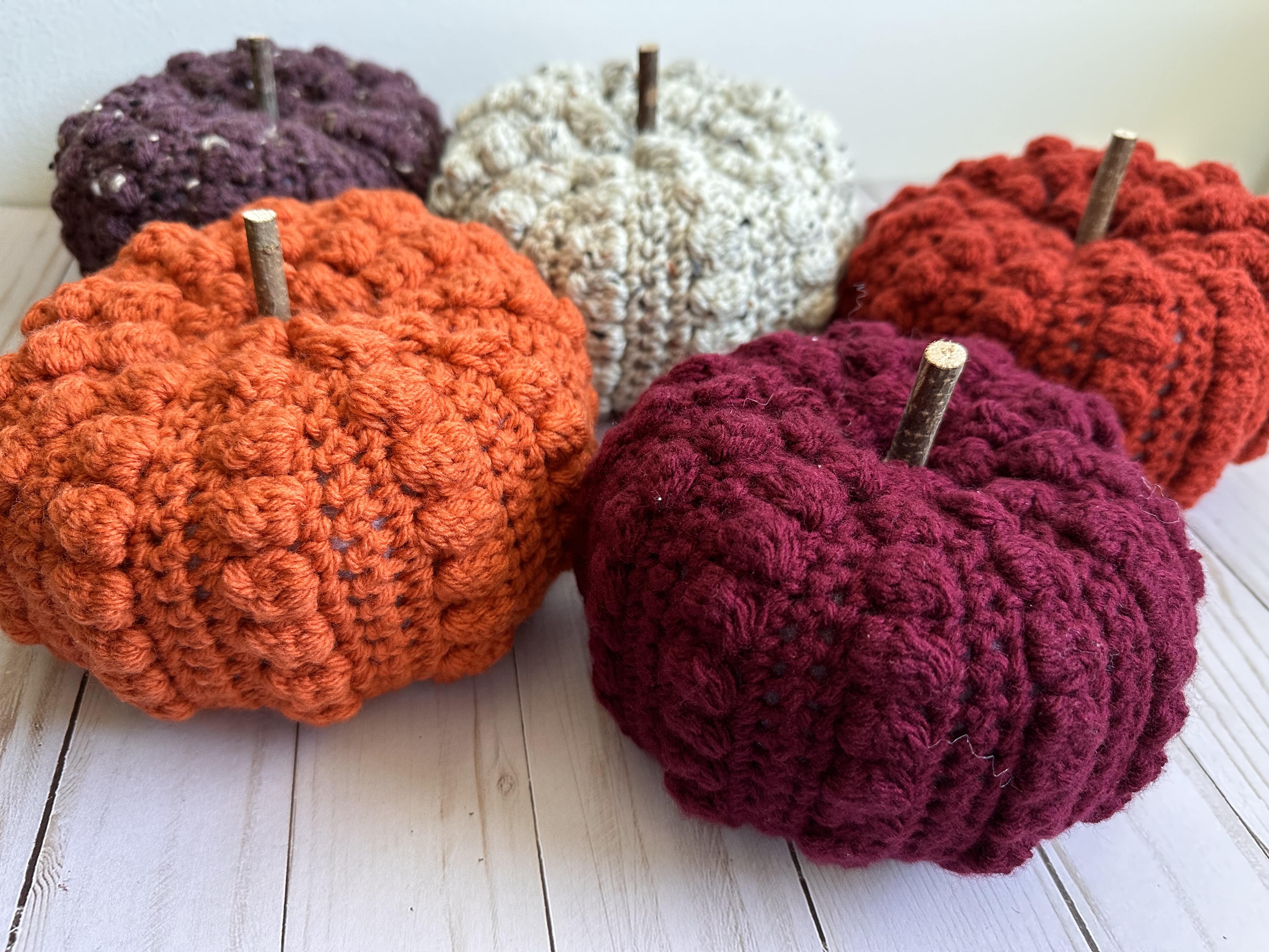 I also have other pumpkins available that were made with a simpler stitch but are just as equally cute.