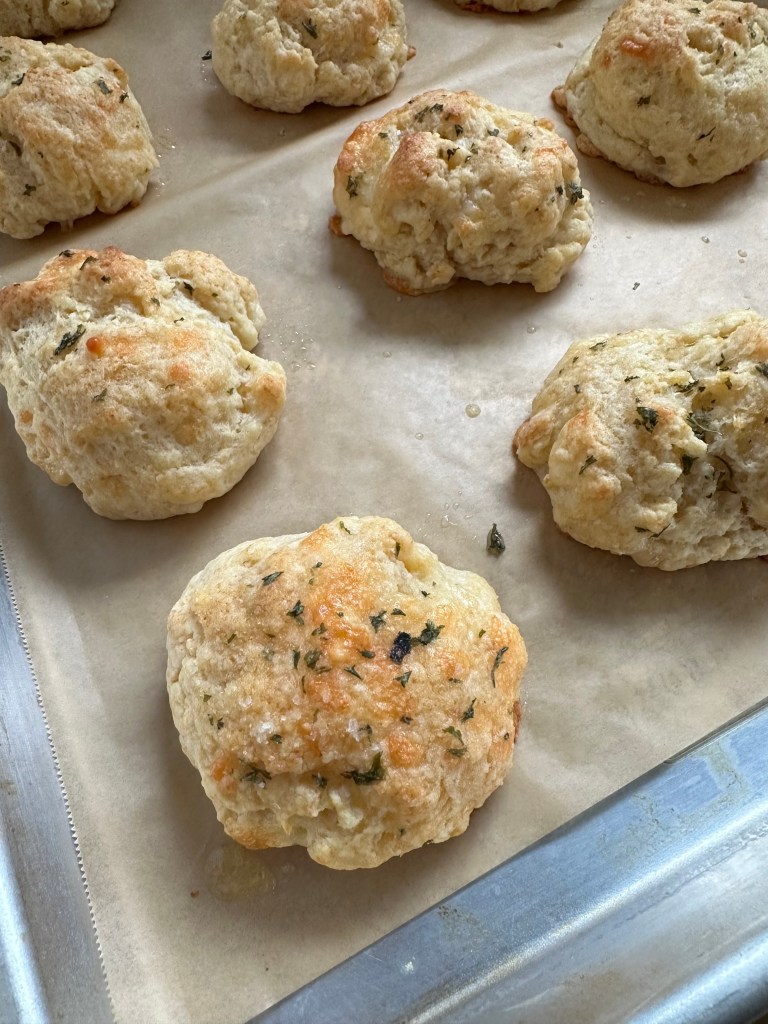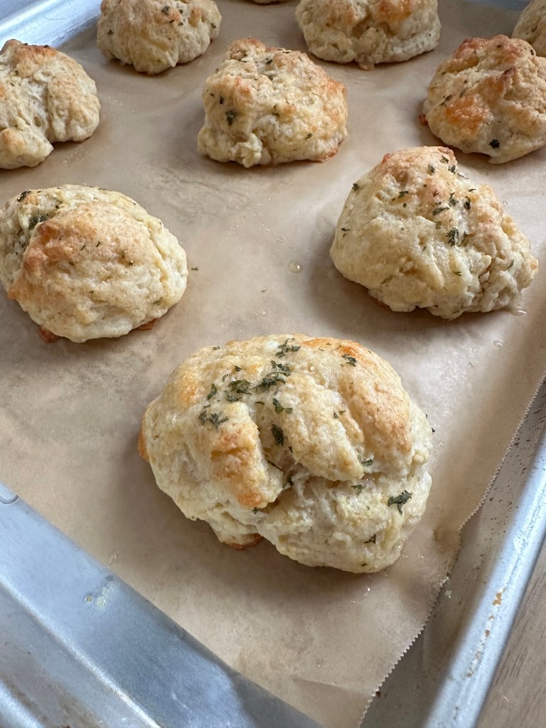 Make ahead: Prep the biscuits – make the dough and then shape them – and then place on a baking sheet in the freezer until frozen. Transfer to a resealable bag and keep in the freezer up to 2 months. Bake straight from the freezer, adding a few minutes to the baking time and then brush the garlic butter and serve.