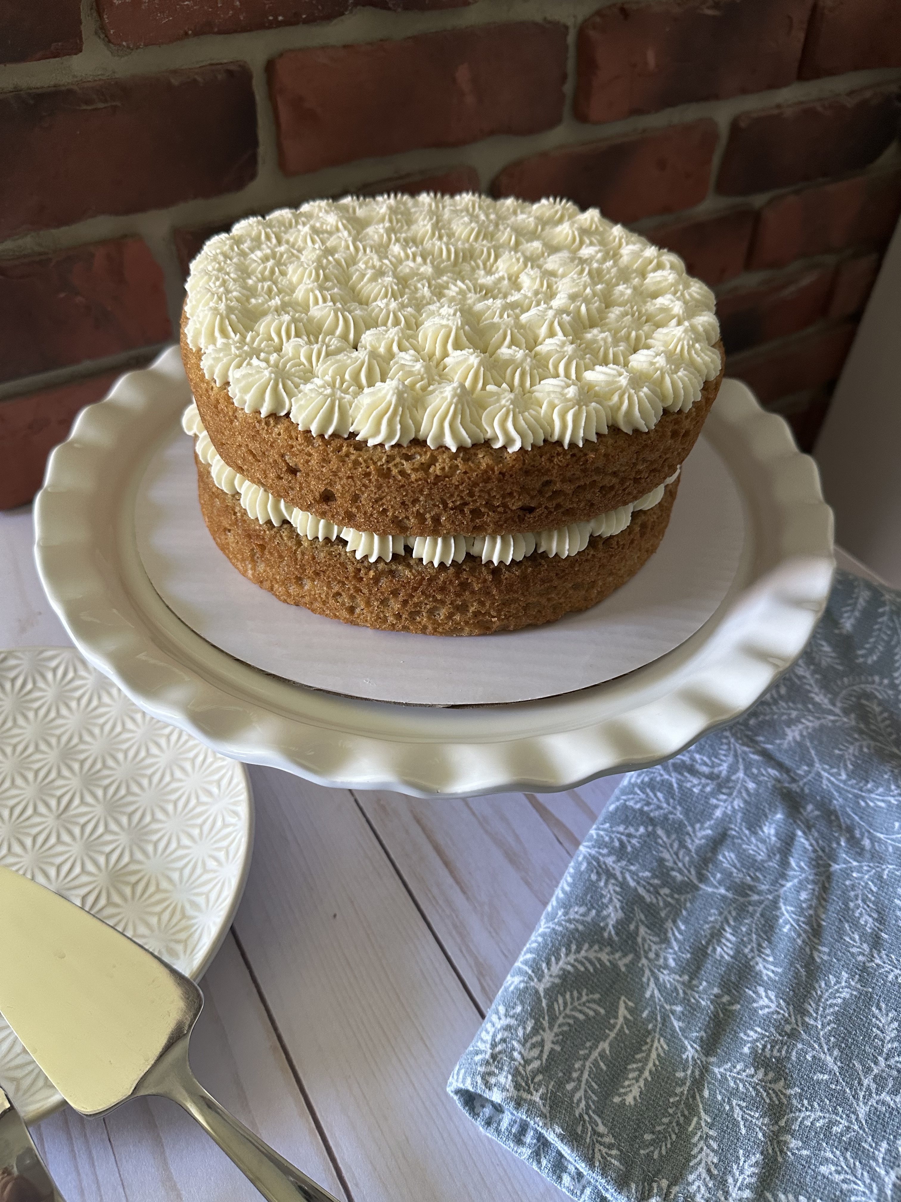 To Assemble: Torte the cake layers if necessary. Transfer the frosting to a piping bag fitted with a large star tip. Place one of the cake layers on a cake board or cake stand and pipe the entire top of the cake with dropped stars. Place the second layer on top and pipe the top with stars as well.