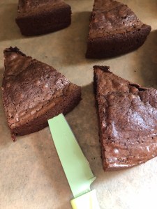 After baking for about 35 minutes they were done. The malted milk balls on top ended up with a nice caramel color and some of the pieces that were still decent size after chopping them gave a nice malted milk taste to the brownies. Just a quick note in case you are thinking of doing the same, I actually didn’t slice these brownies the same day I baked them. I wrapped them in plastic wrap and kept them at room temperature and then sliced them the following day to try to keep them fresh an extra day or two. And, I will point out, as with most brownies, you should warm your knife under hot tap water before slicing. You will get cleaner slices that way.