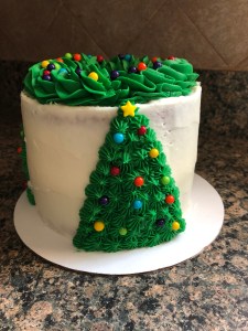 A pic of the Christmas cake I made (this was totally not the design I had in mind for this cake, but, I had a frosting fail at 10p on a work-night so I had to improvise and was happy with the outcome)…