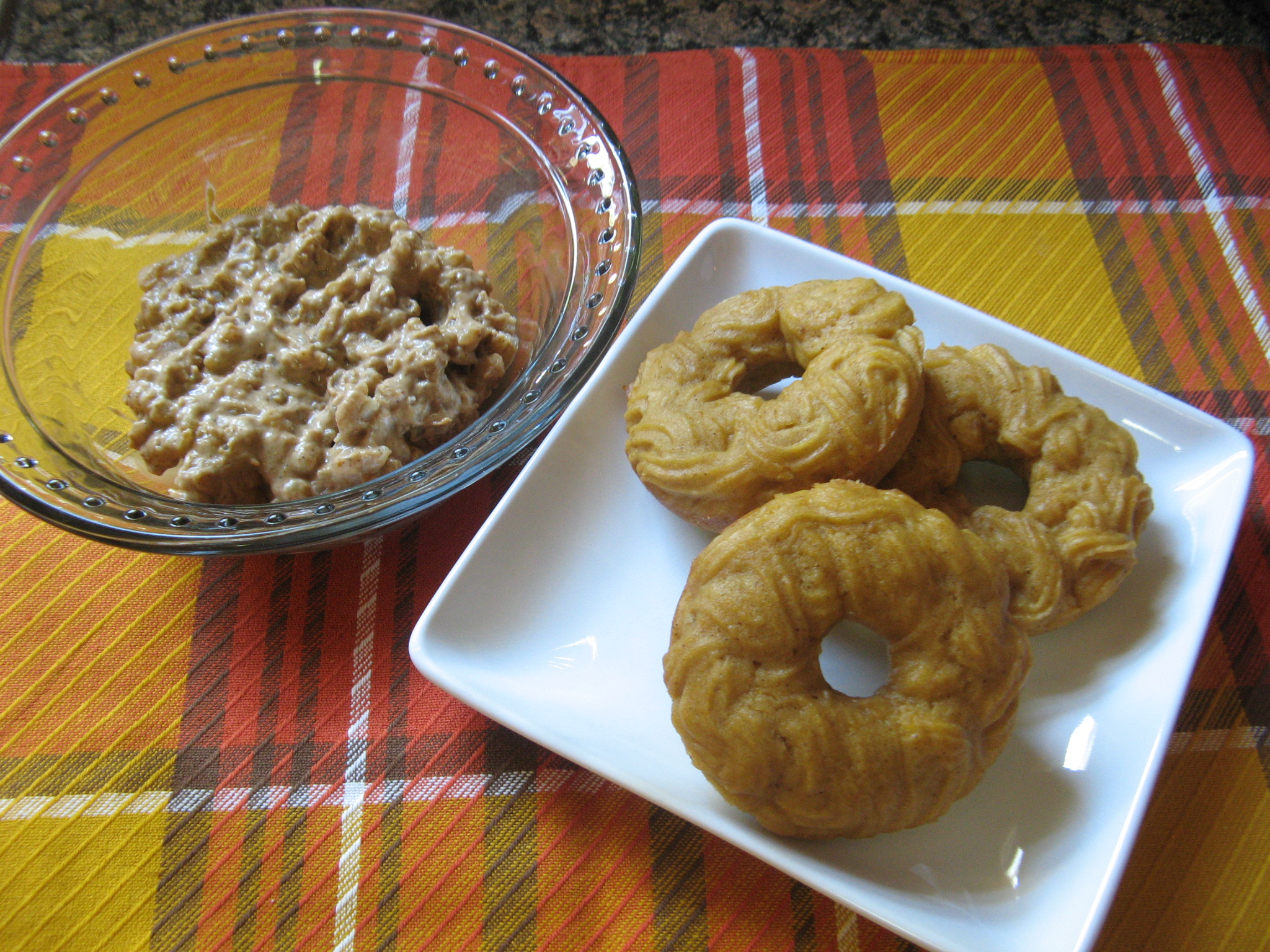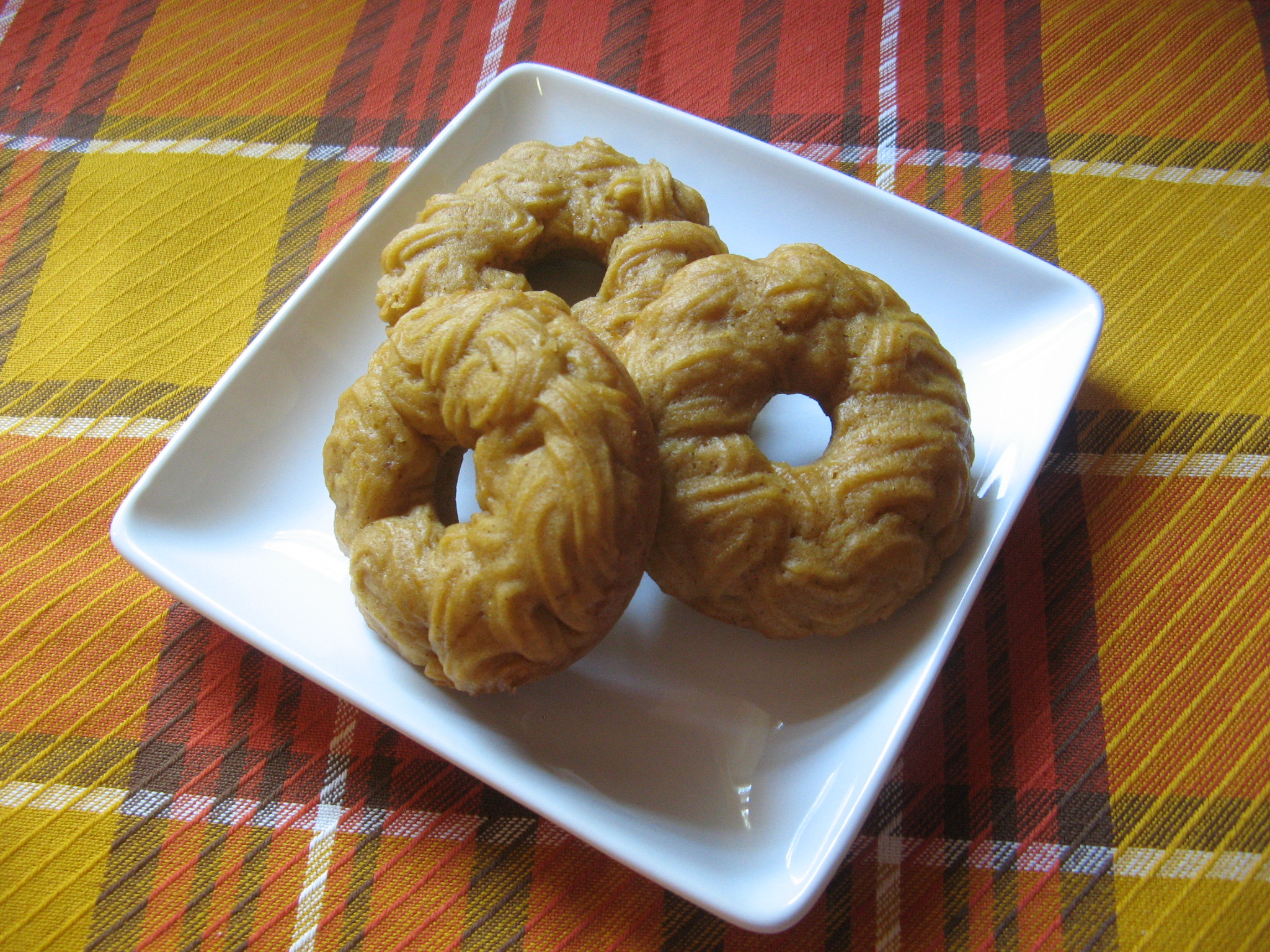Since I had about 2 cups of pumpkin left I decided to whip up a batch of pumpkin doughnuts so it wouldn’t go to waste. Hopefully I won’t suffer from pumpkin over-load too early in the season!
