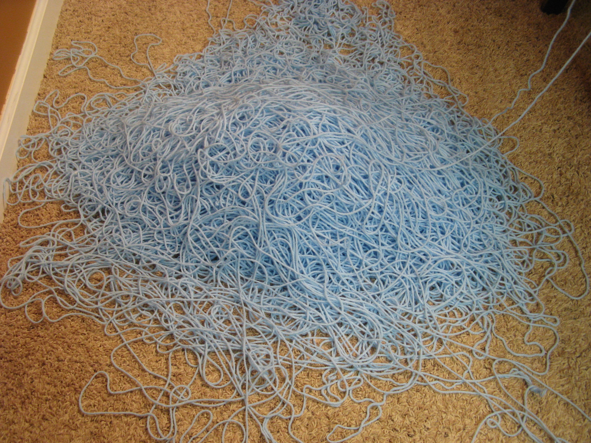 Finally, a scarf that I began when a fellow blogger, For The Knit Of It, ran a knit-a-long back in March. The pattern chosen was the Bosc Pattern from Robin Ulrich. And yes, Bosc as in pears. If you look closely at the scarf you can actually see the curves of pears in the pattern. I loved the pattern and was excited to work on it, but, getting it started was such a task. Just getting to this point – the first 10 rows of the pattern – took me about 10 tries.