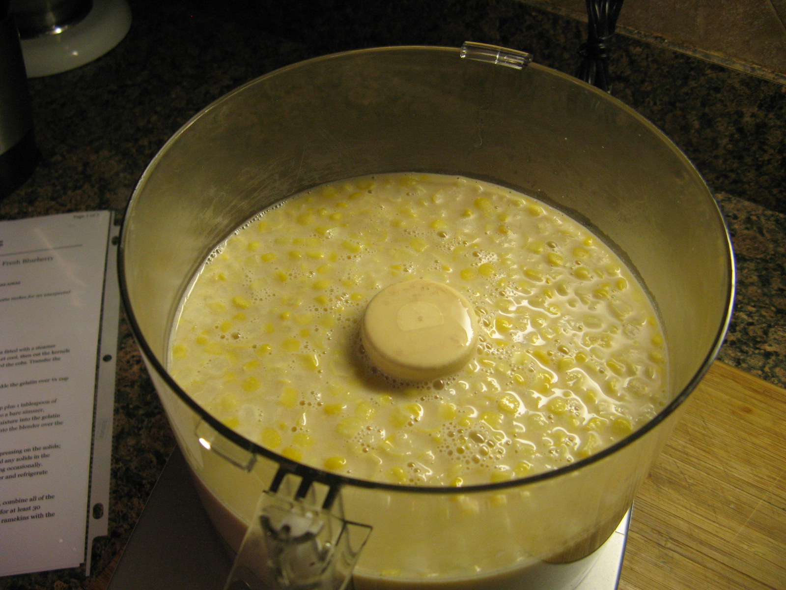 I recently signed up for Food & Wine Magazine’s Daily email where I get one sensational (their words not mine) recipe emailed to me every day. I usually glance at the recipe and then delete the email, not because the dish sounds bad, but because I know I will never make it. A week or two ago I got one recipe that I knew I wanted to try… A Sweet Corn Panna Cotta with Fresh Blueberry Compote. I had panna cotta for dessert at a restaurant a few years ago and instantly loved it; granted that one was a Mango Panna Cotta with a Passion Fruit Sauce. I never attempted to make it myself because I thought that it would be difficult – the one recipe I came across was a bit intimidating but once I saw this one I knew I could handle it.