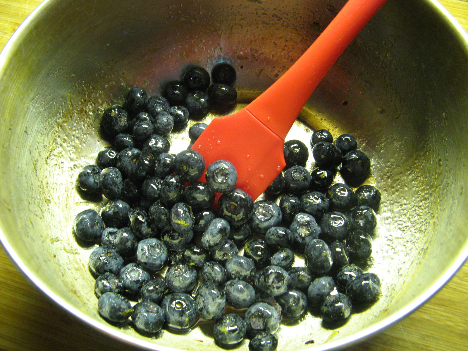 With the mixer on low add in the flour mixture. And then fold in the blueberries.