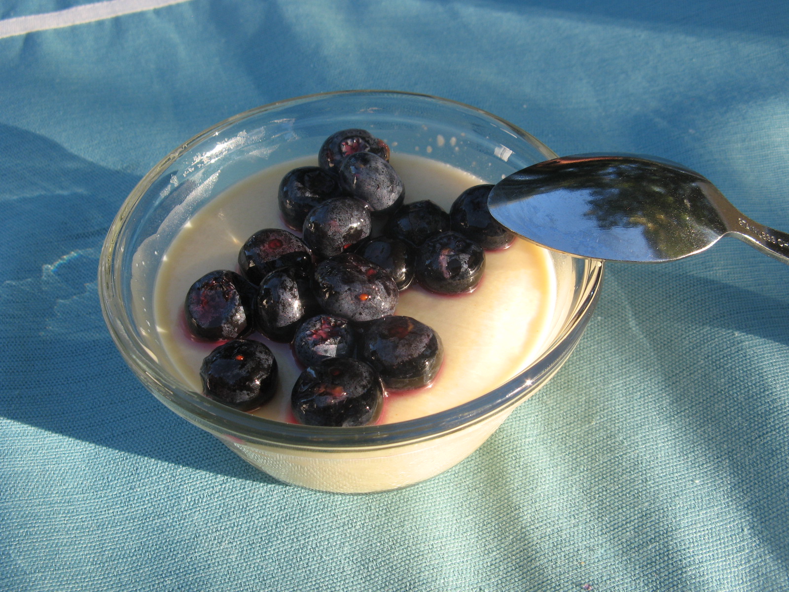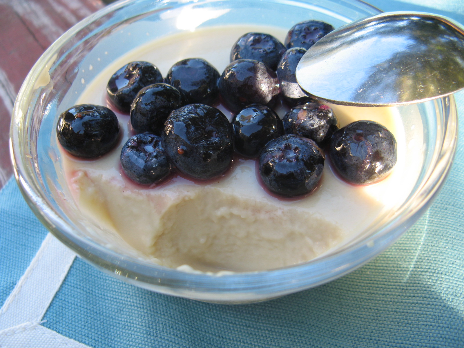 Sweet Corn Panna Cotta with Fresh Blueberry Compote