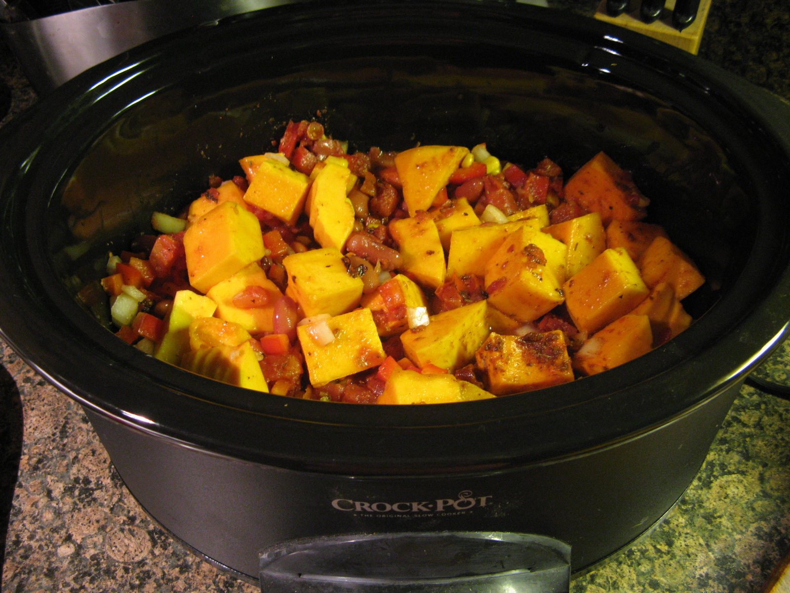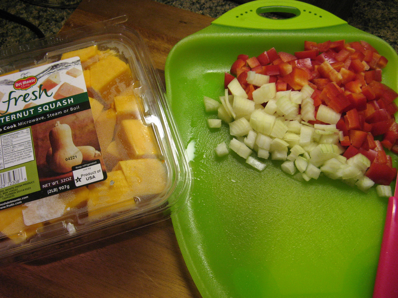 I started by peeling and chopping up a small butternut squash. I usually take the easy route and buy butternut squash already chopped, but since it’s not Fall yet it wasn’t available at my local supermarket. I did learn though that peeling and chopping up a small butternut squash is much easier than a large one. Next, I tossed it with olive oil, salt and pepper and roasted it in the oven for about 35 minutes.