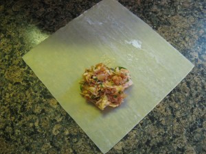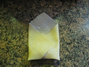 Next, I placed about a teaspoon of shredded cheddar cheese in the center of each dough piece and pinched it closed.
