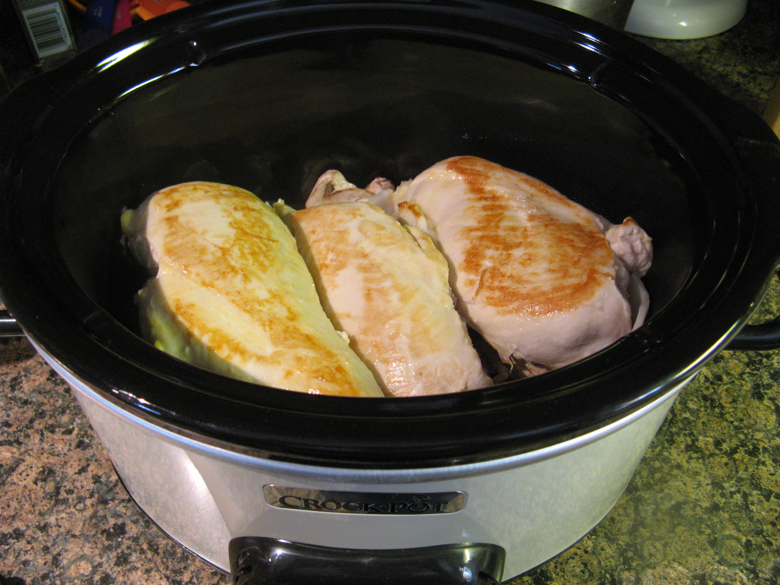 Next, I placed chicken breasts that I lightly browned on both sides over the vegetables.