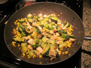 To make the dish I started by cooking the linguine per the package instructions. Once ready, I drained and then tossed them with a bit of oil before setting aside. Meanwhile, I cooked the chicken in a large skillet for a few minutes and then added in the vegetables. After cooking for an additional few minutes, to allow the vegetable to become tender, I added the sauce and noodles and tossed everything together. After letting it cook for a few more minutes it was ready to enjoy!