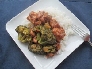 Add the remaining garlic and ginger, along with the vegetables – pepper, mushrooms, carrots and broccoli – to the skillet with the chicken and cook covered, stirring occasionally, until the vegetables are tender. Add the soy sauce mixture along with the cooked linguine and stir to combine – it might be easier to use tongs to toss everything together. Cover and allow to cook for a few more minutes for the flavors to meld.