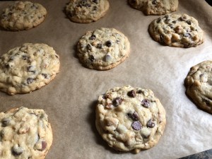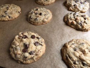 Scoop 1/4 cup of dough onto the prepared cookie sheets 3 inches apart. Bake in the preheated oven for 11-14 minutes, until the cookies are beginning to darken around the edges and the centers are puffed and look slightly underdone. Cool the cookies on the pan for 2-3 minutes so they can set and then transfer to a wire rack to cool completely.