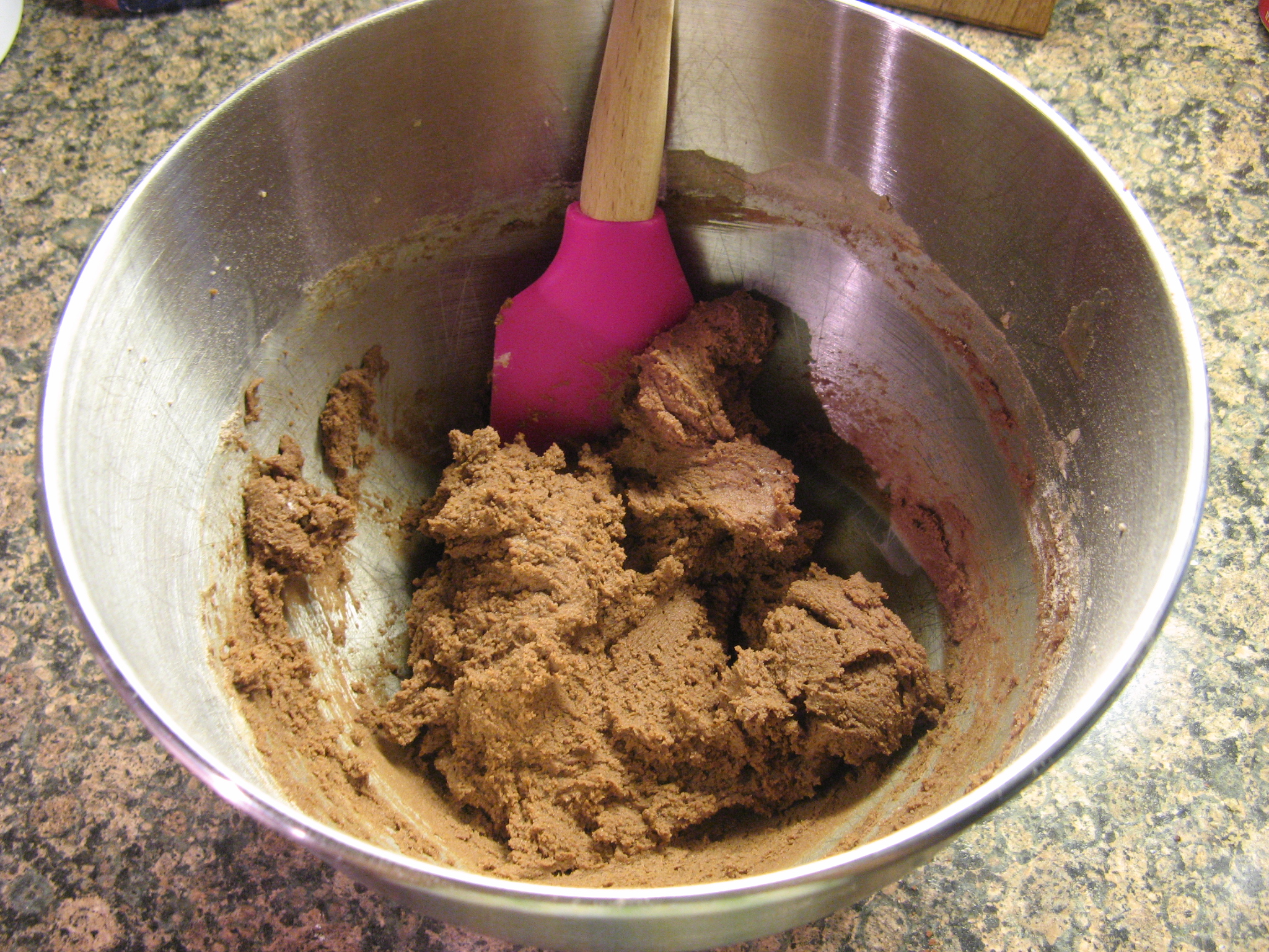 Stir the flour mixture into the chocolate mixture until just combined. Add in the mini chocolate chips and continue stirring until well combined. Cover with plastic wrap and refrigerate for 20 minutes.