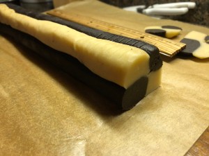 In a microwave safe bowl melt the chopped chocolate and butter together. Heat for 20 second intervals, stirring between each until the mixture is smooth. Cool to room temperature.
